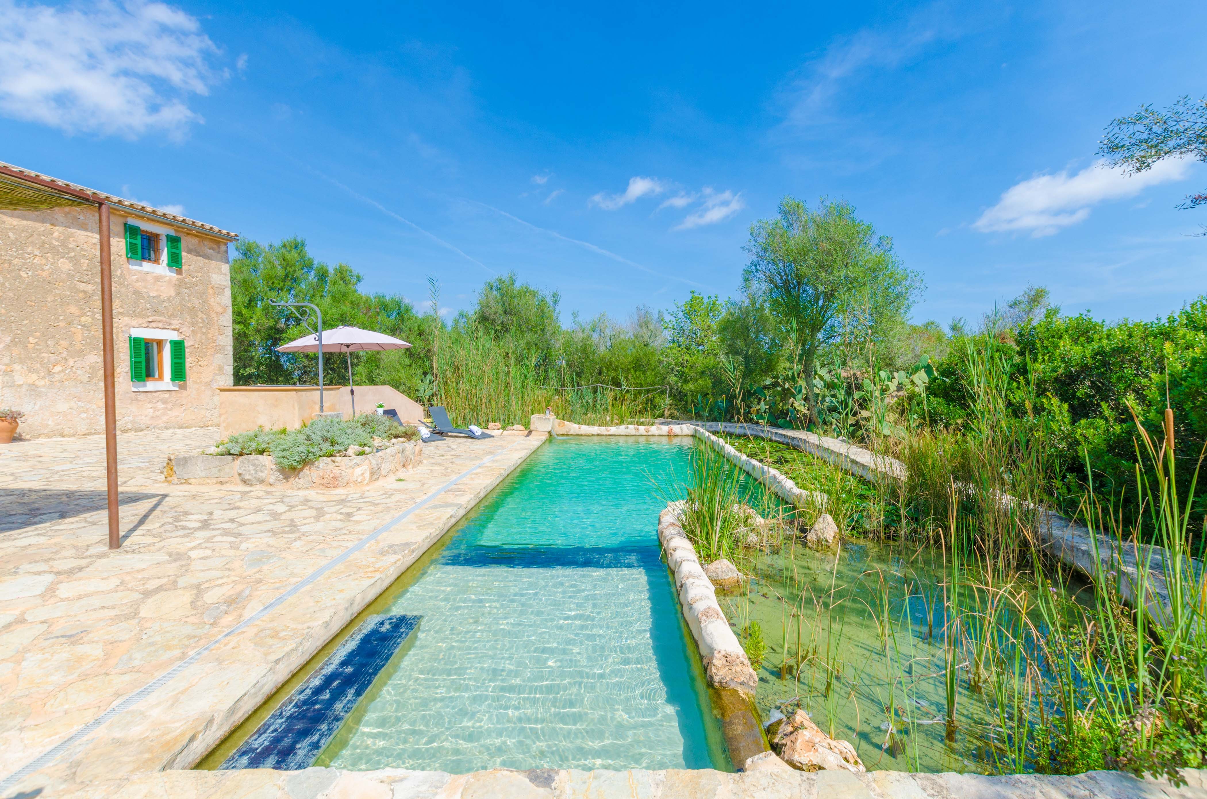 Het pronkstuk van deze Finca is het privézwembad van 3m x 8m met een diepte variërend van 0,45m tot 1,6m. Hier zwem je zonder chemicaliën, want het water wordt gereinigd door de beweging van het water, dat door zand en planten stroomt; een natuurlijke en duurzame manier van vakantie vieren. s Middags kun je zonnebaden op een van de vier ligstoelen, genieten van een kopje koffie onder de hennep veranda, of een smakelijke barbecue houden. Dit prachtige huis heeft geen directe buren.