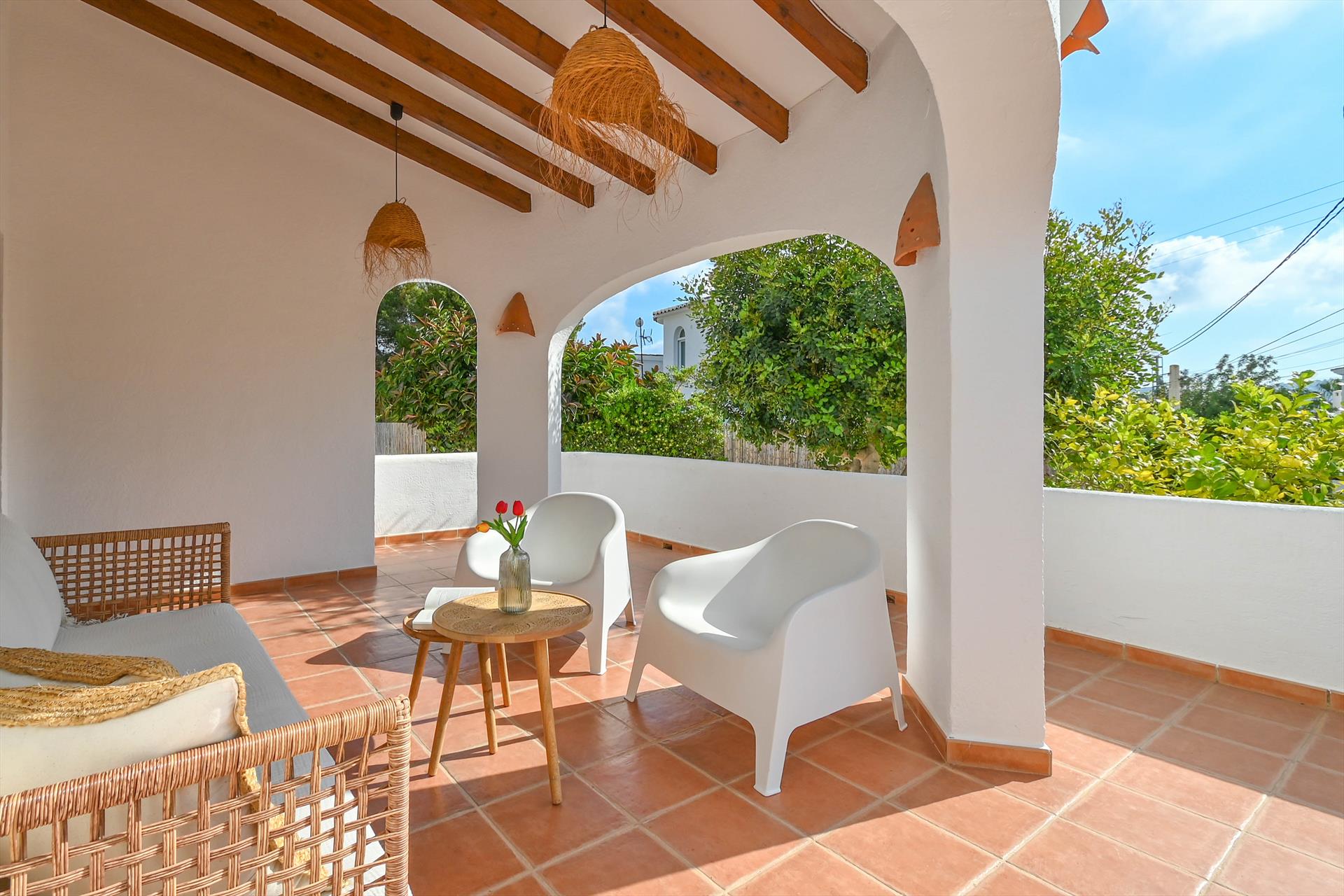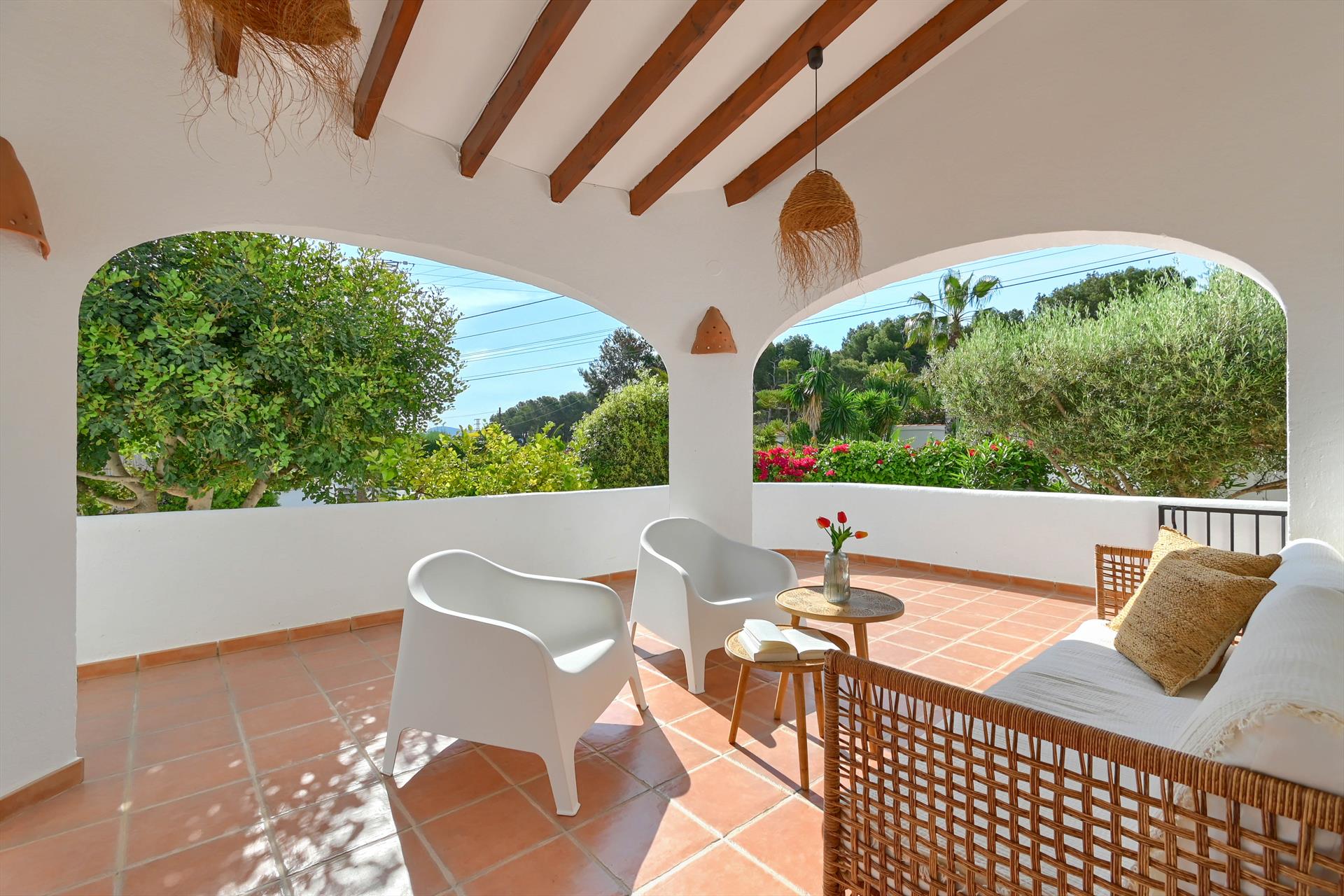 Prachtige en klassieke villa in Moraira, Costa Blanca, Spanje met privé zwembad voor 8 personen. Het huis ligt in een kust- en woonwijk, dicht bij winkels, op 1 km van het strand Playa de les Playetes en op 1 km van de Middellandse Zee.