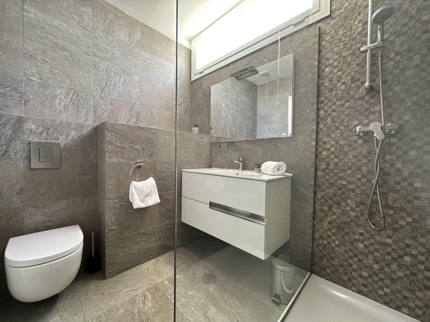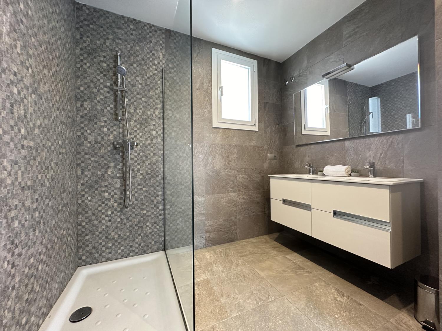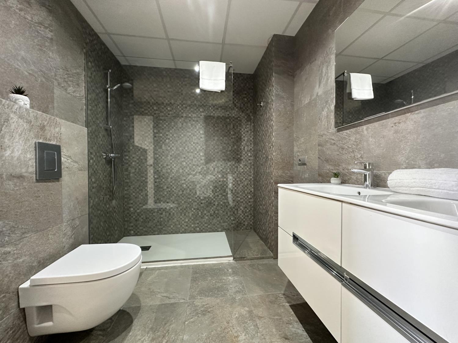 - Badkamers: Elke badkamer is voorzien van een douche.