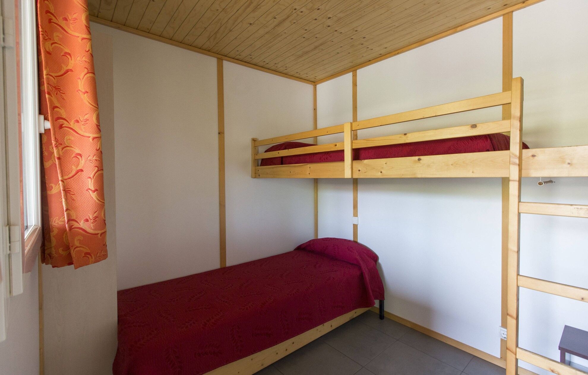 - Eén slaapkamer met drie eenpersoonsbedden
