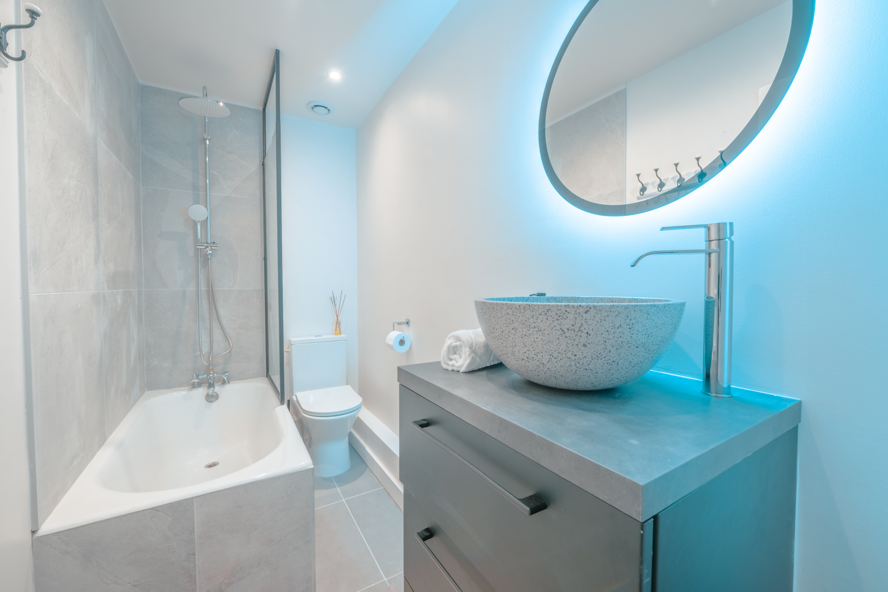 – 2 grote badkamers met bad en douche.