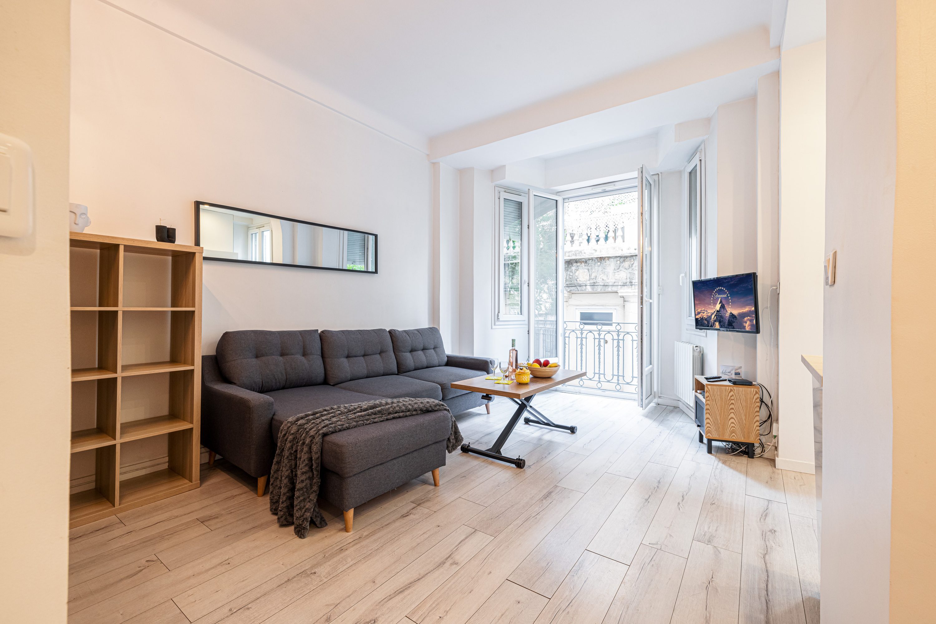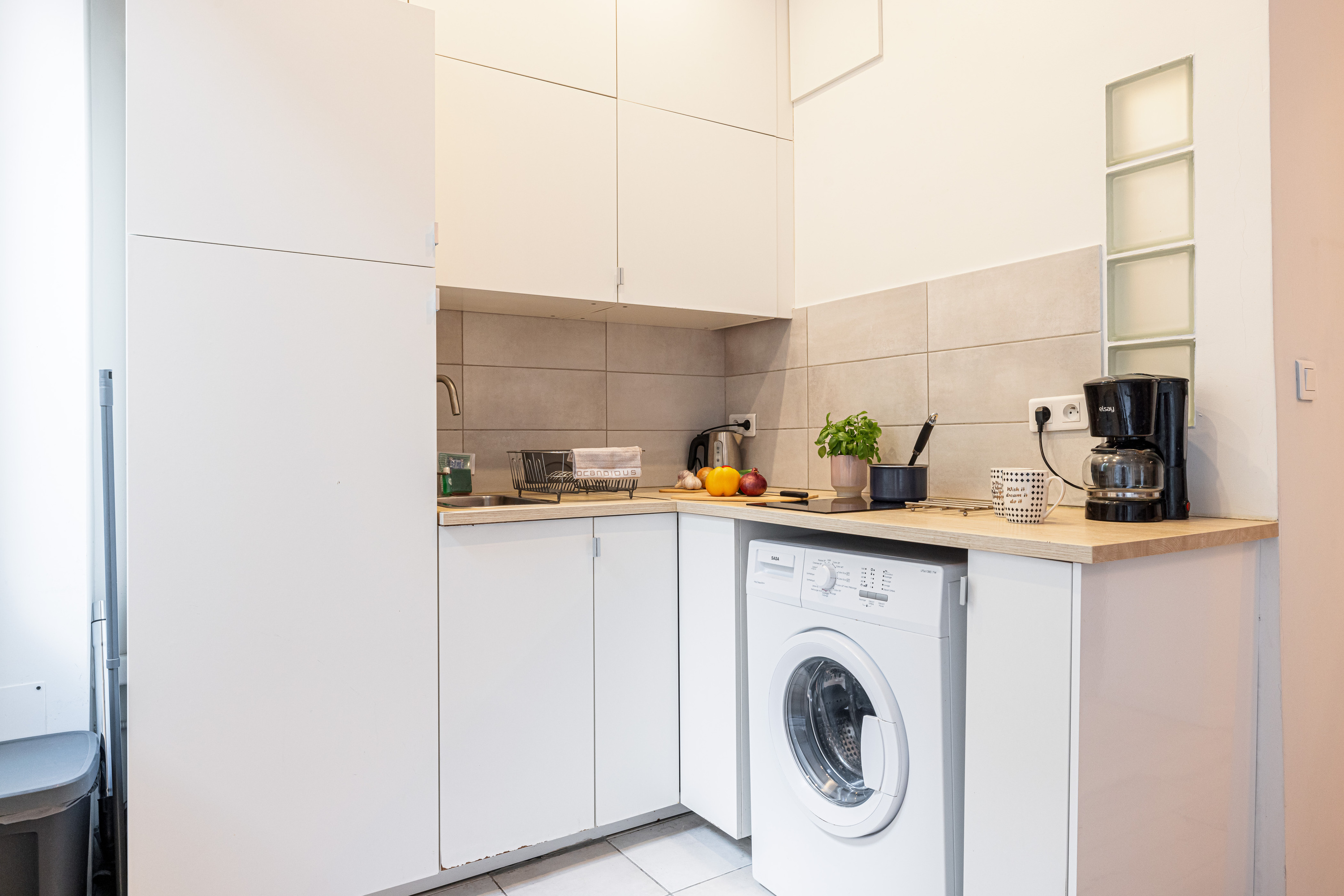 Dit moderne appartement, gelegen op de eerste verdieping van een prachtig historisch gebouw, biedt alle gemakken voor een ideaal verblijf. De open keuken en de zonovergoten woonkamer zijn volledig uitgerust en voorzien van airconditioning. De recent gerenoveerde badkamer beschikt over een verfrissende regendouche, met een apart toilet dat handig in de inkomhal is gelegen.