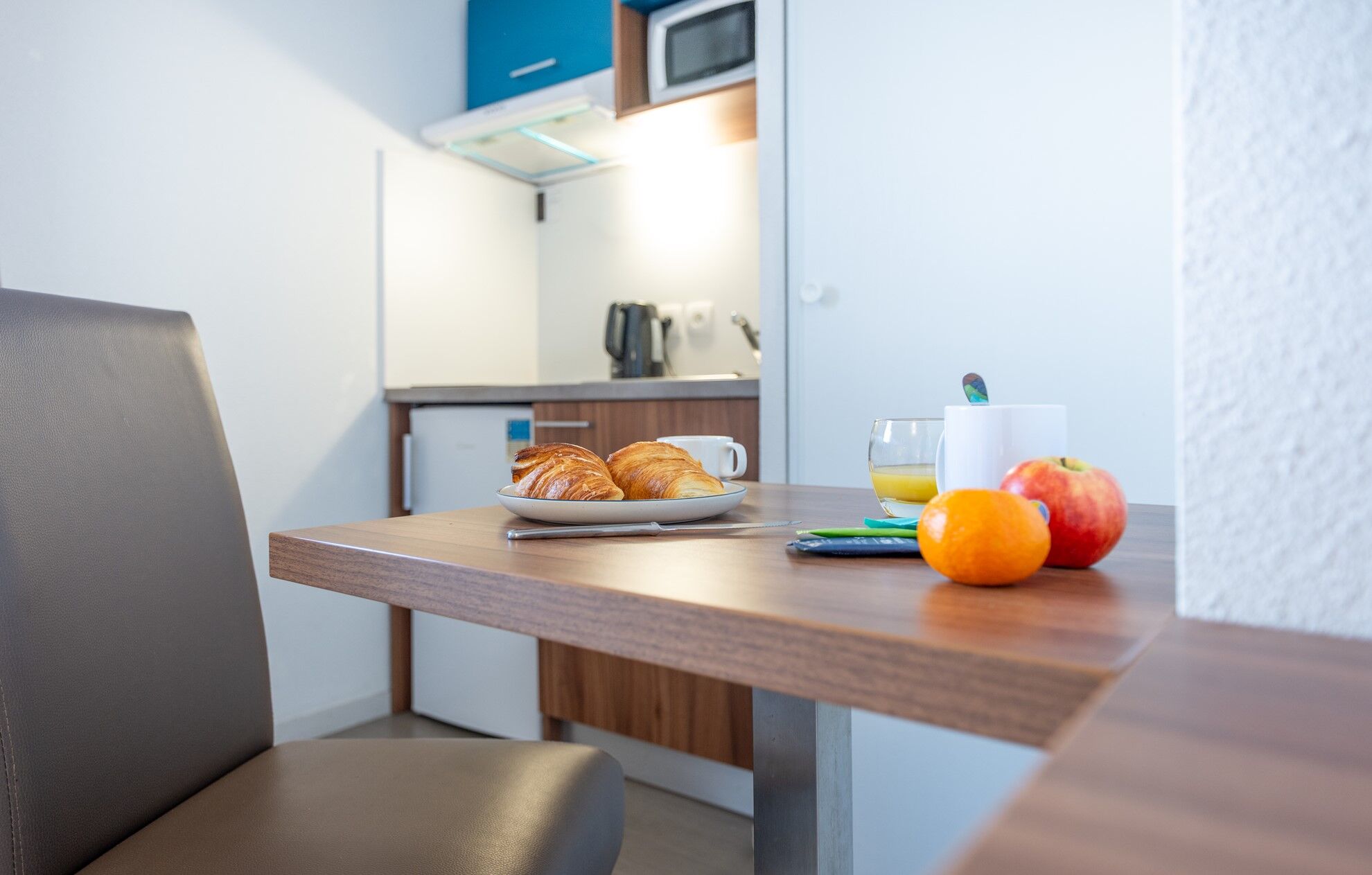 ingerichte kitchenette (koelkast, keramische kookplaat, magnetron, waterkoker, koffiezetapparaat)