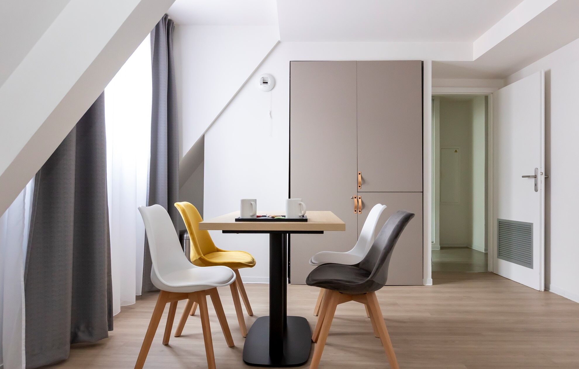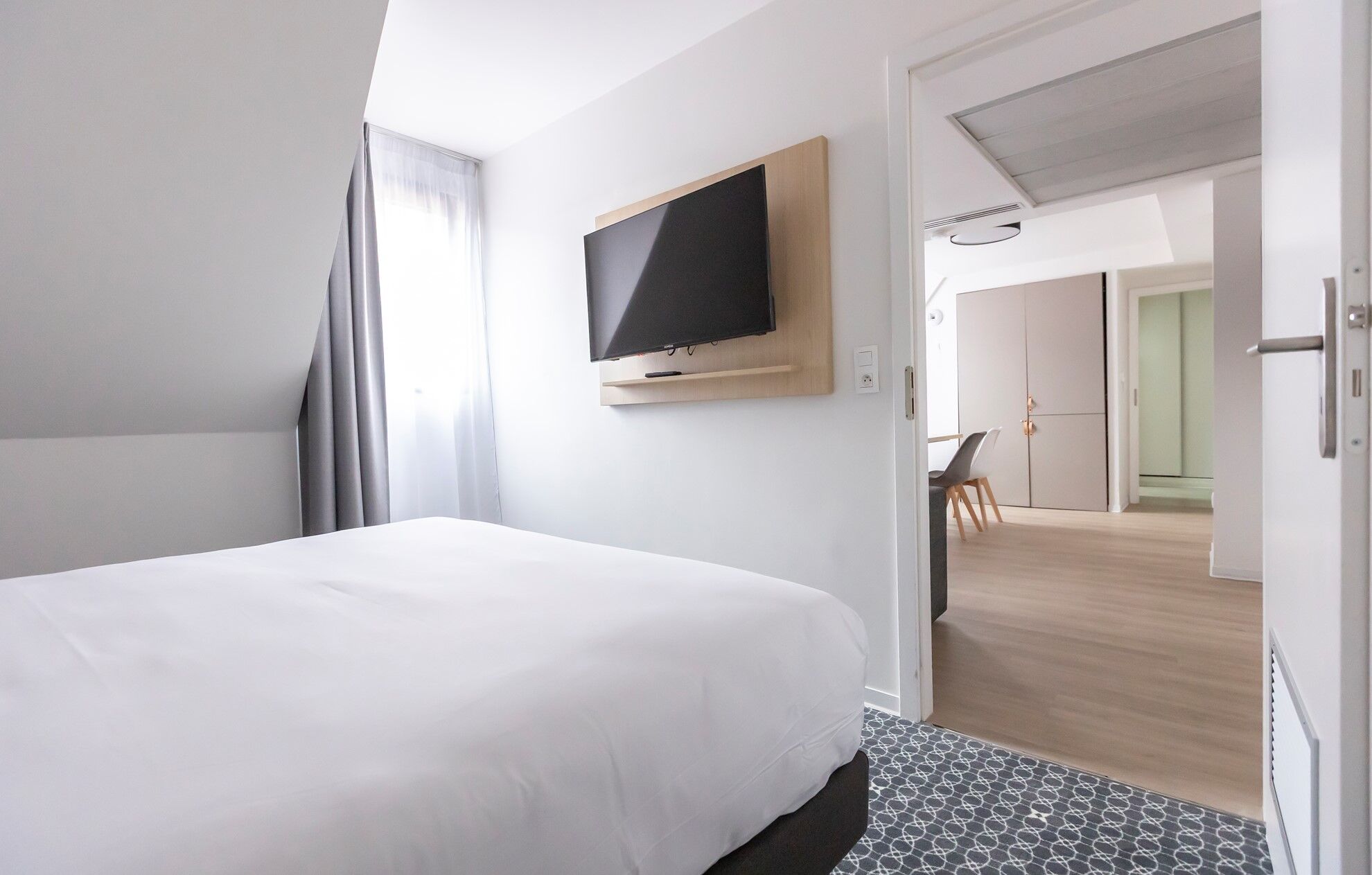 De appartementen, ontworpen voor 2 tot 4 personen, zijn allemaal voorzien van airconditioning en zijn uitgerust met een kitchenette met keramische kookplaten, koelkast / vriezer, afzuigkap, magnetron / grill en vaatwasser, met een badkamer of douche met een föhn en verwarmd handdoekenrek en een toilet. Flatscreen televisie en betalende WiFi in de appartementen.