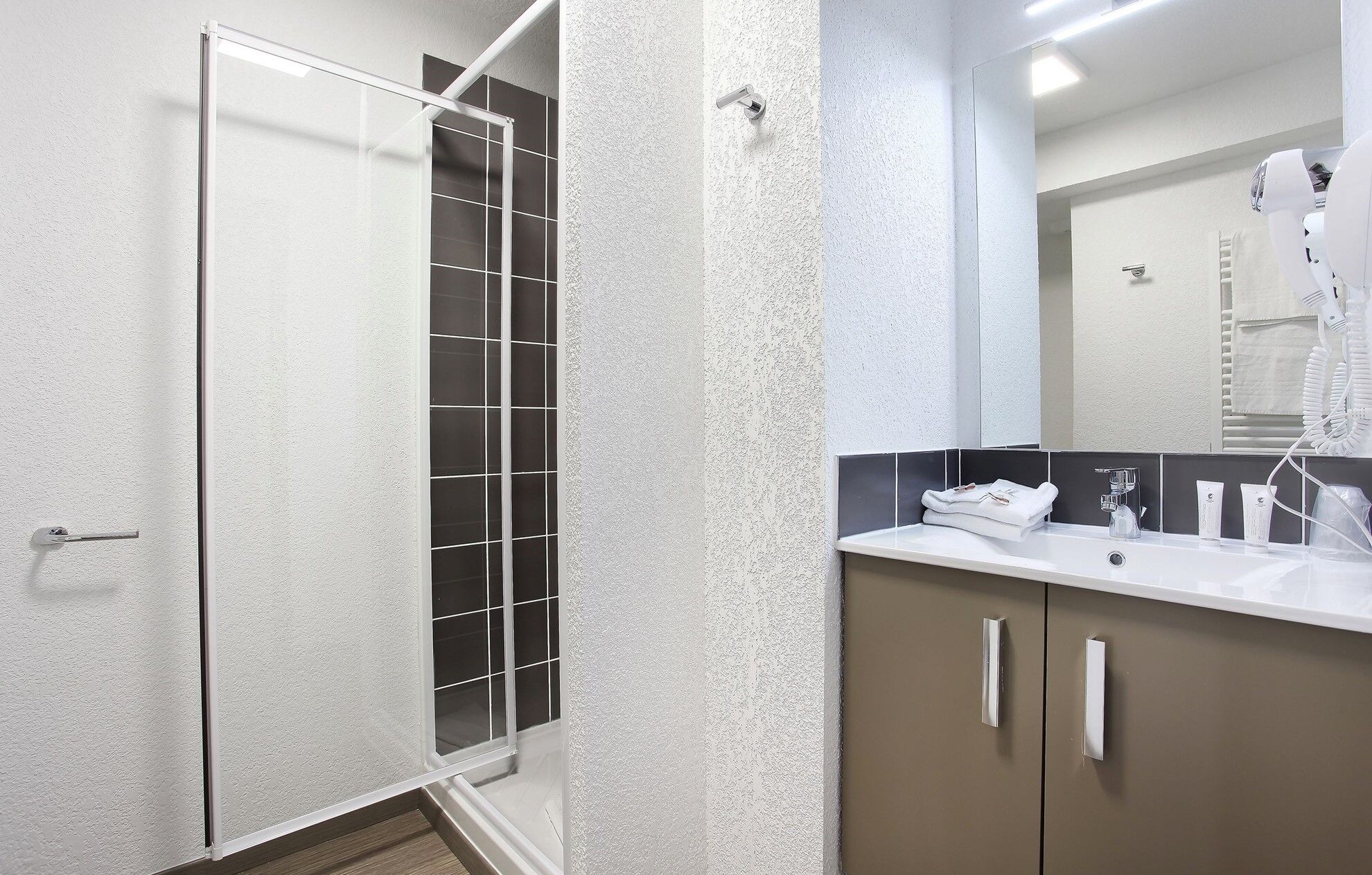 Badkamer (douche met douche scherm, haardroger)