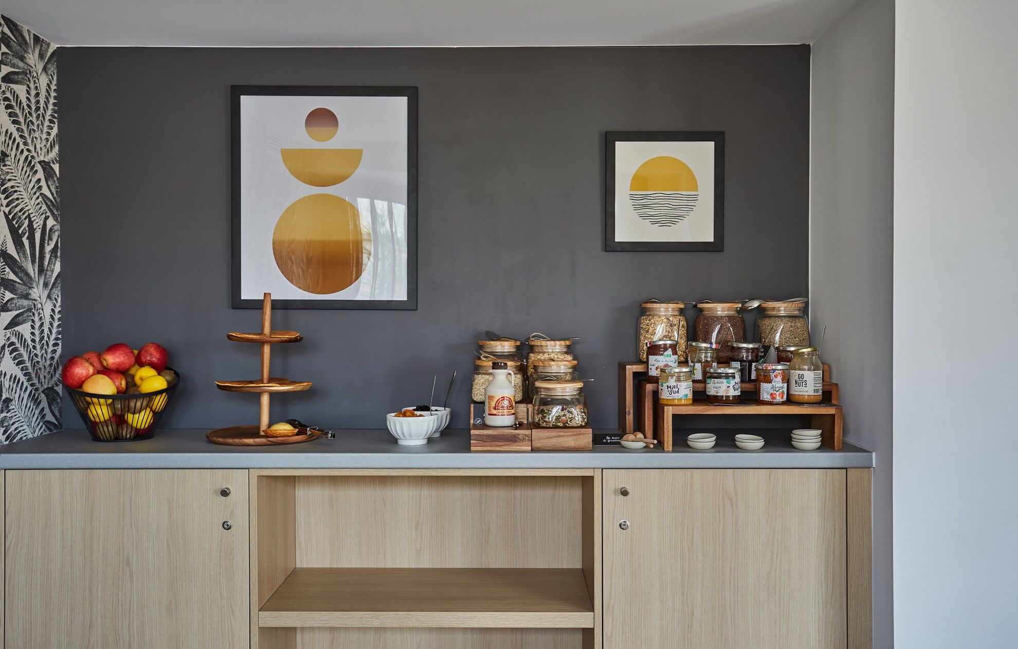 Kitchenette met elektrische kookplaat, afzuigkap, magnetron met grill, koelkast en waterkoker