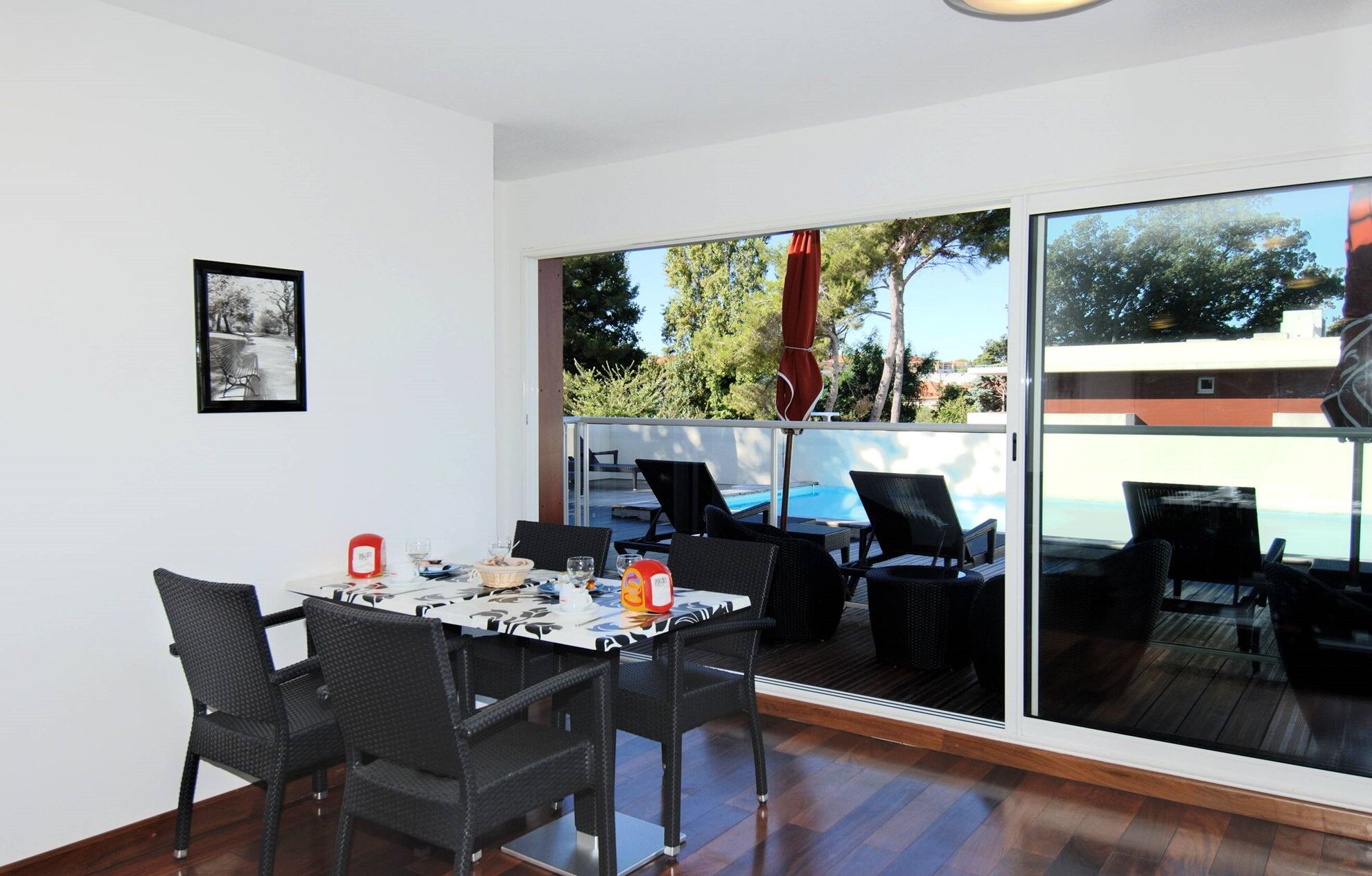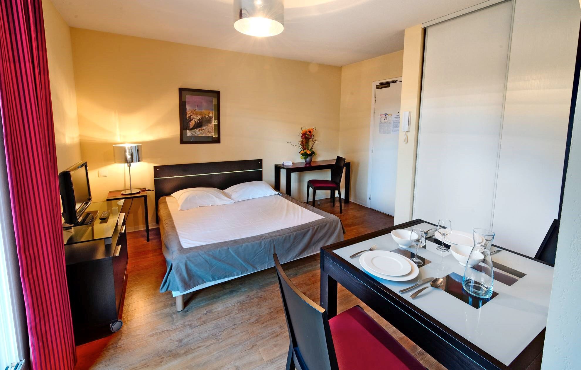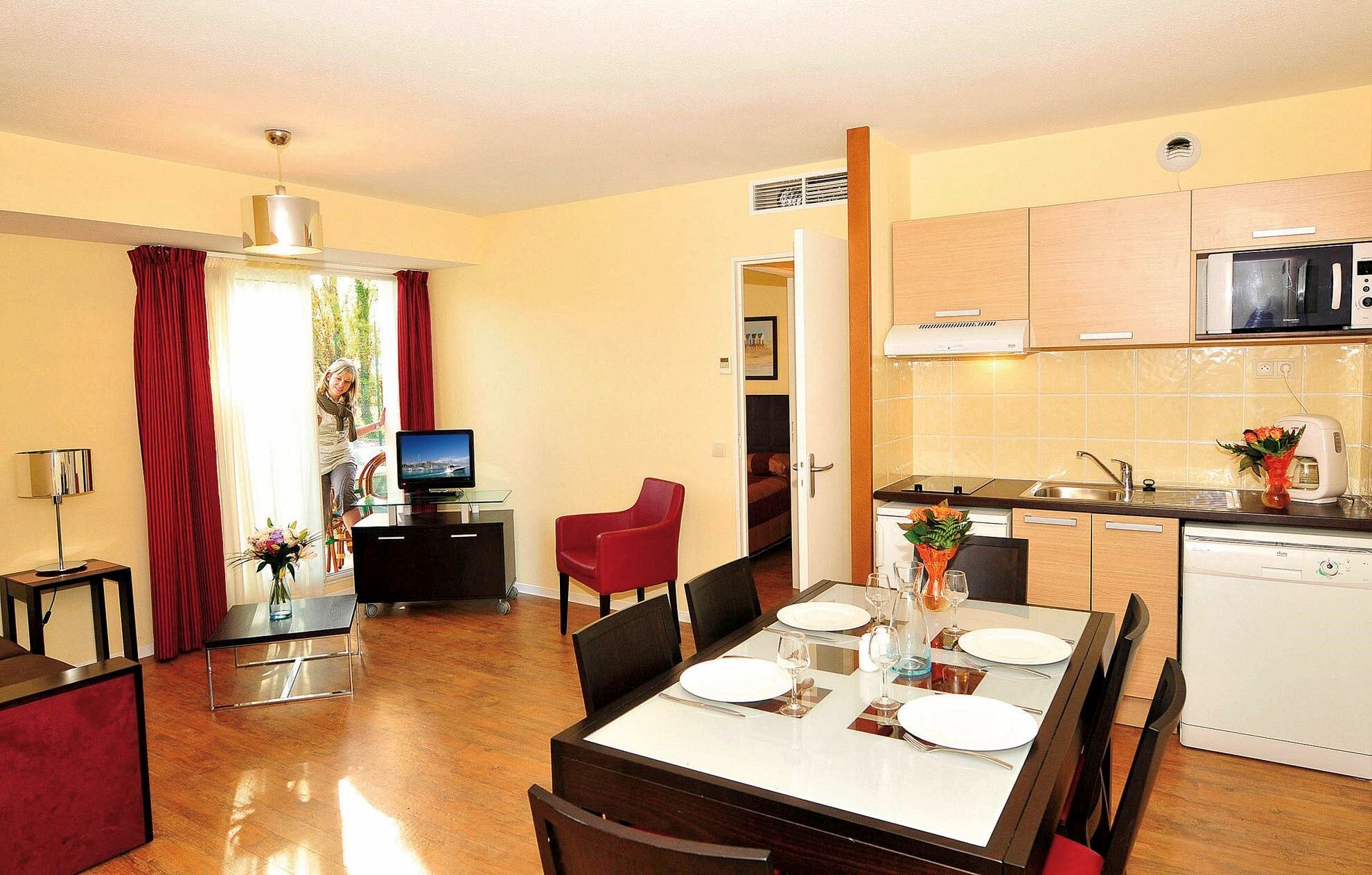 De appartementen, van 2-kamerstudio's tot 3-kamerappartementen voor 6 personen, zijn volledig uitgerust: kitchenette (keramische kookplaat, magnetron, vaatwasser), badkamer of douche met toilet, flatscreen televisie, WIFI-toegang (glasvezel), airconditioning in alle appartementen en balkon of terras.