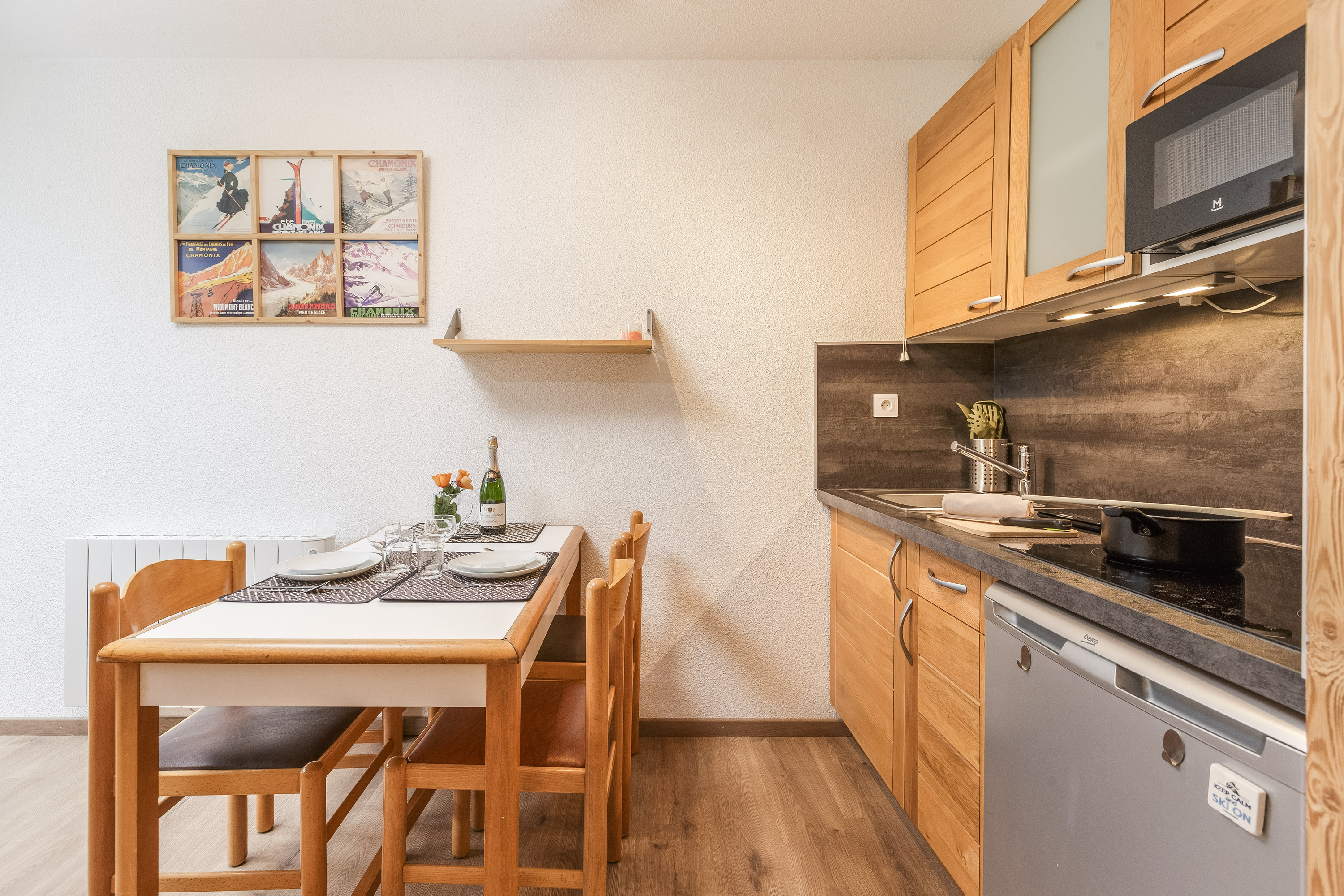 Het appartement beschikt over een lichte woonkamer met een balkon met prachtig uitzicht op de bergen, ideaal om te genieten van een kopje koffie in de ochtend of een aperitiefje in de middag. Er is een ingebouwde kitchenette, een eetruimte binnen, een skiberging, een ondergrondse parkeergarage, een comfortabele tweepersoonsslaapbank en een stapelbed. De badkamer is voorzien van een bad met douche en toilet.