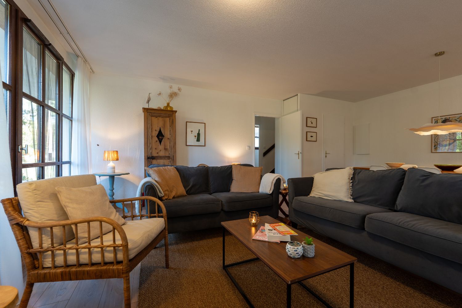 Waarschijnlijk brengt u het grootste deel van uw tijd door op het uitgestrekte, overdekte terras, gemeubileerd met een comfortabele tuinset en ligbedden. De privétuin, omzoomd met weelderige struiken, is de perfecte, veilige plek voor kinderen om te spelen. Binnen beschikt de grote woonkamer over een uitnodigende zithoek, een flatscreen-tv met internationale zenders en een gezellige open haard. De volledig uitgeruste keuken, compleet met ingebouwde apparatuur, heeft alles wat u nodig hebt om heerlijke maaltijden te bereiden.