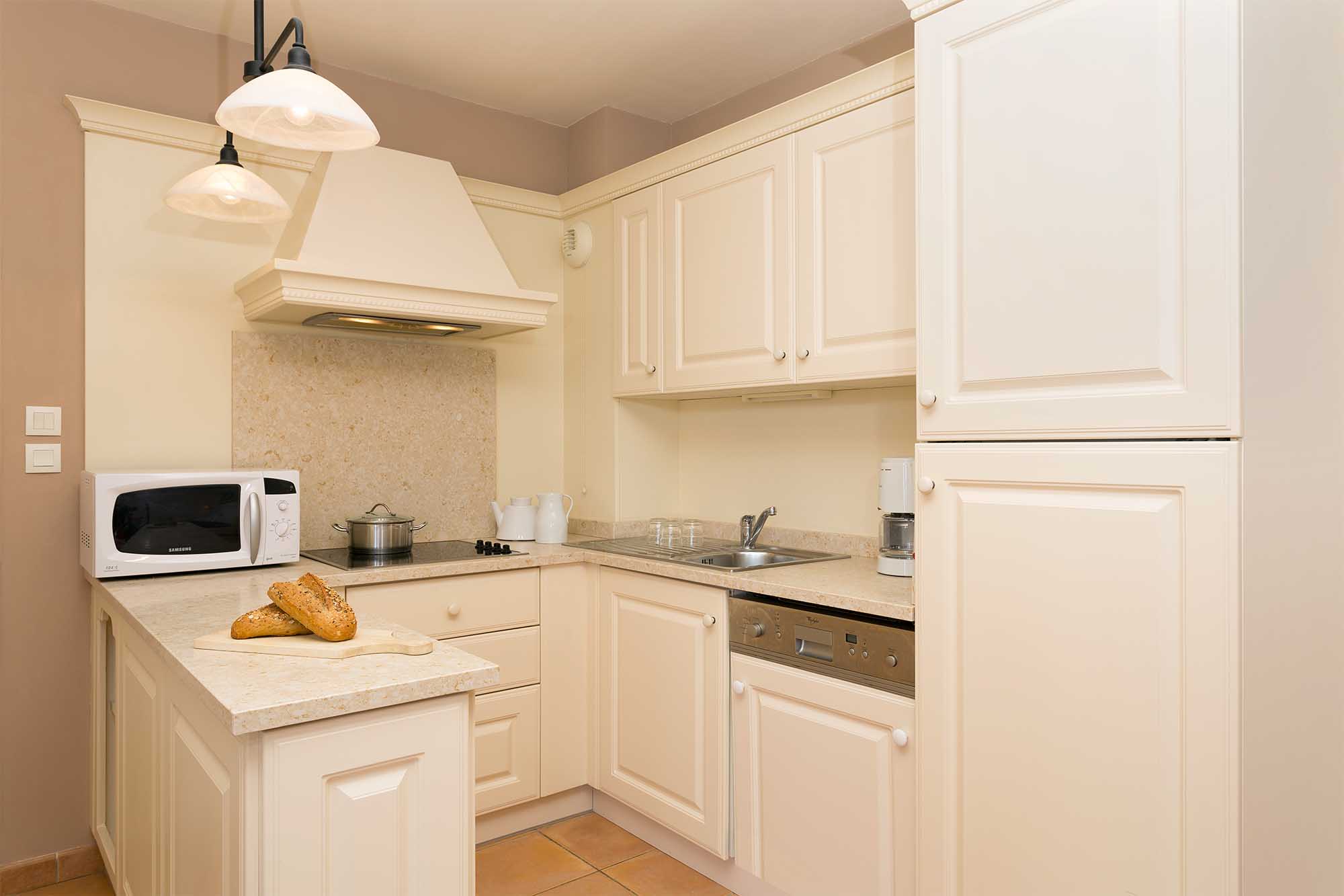 De appartementen zijn licht, smaakvol ingericht en slim ingedeeld, met grote Franse ramen die veel natuurlijk licht binnenlaten. De open keukens zijn modern uitgerust met koelkast, vaatwasser en een magnetron met grillfunctie. De gezellige woonkamers beschikken over een flatscreentelevisie, en boeken en gezelschapsspellen zijn beschikbaar voor gezellige avonden. De slaapkamers zijn voorzien van hoogwaardig beddengoed; de bedden zijn opgemaakt bij aankomst en handdoeken zijn inbegrepen.