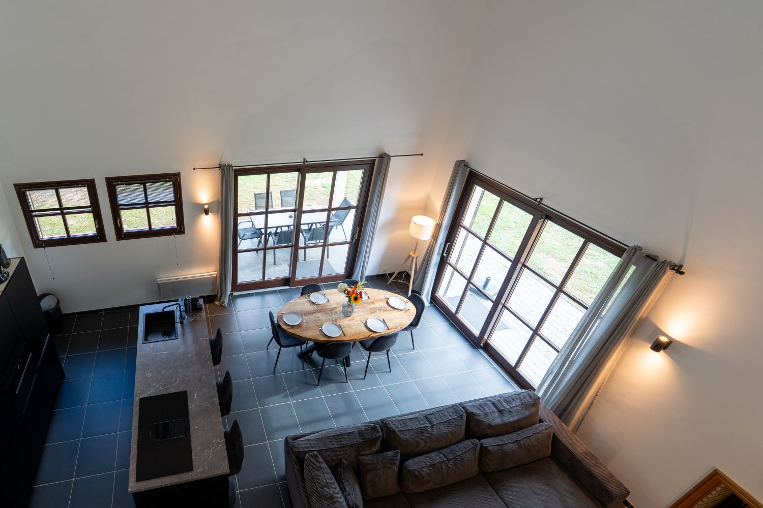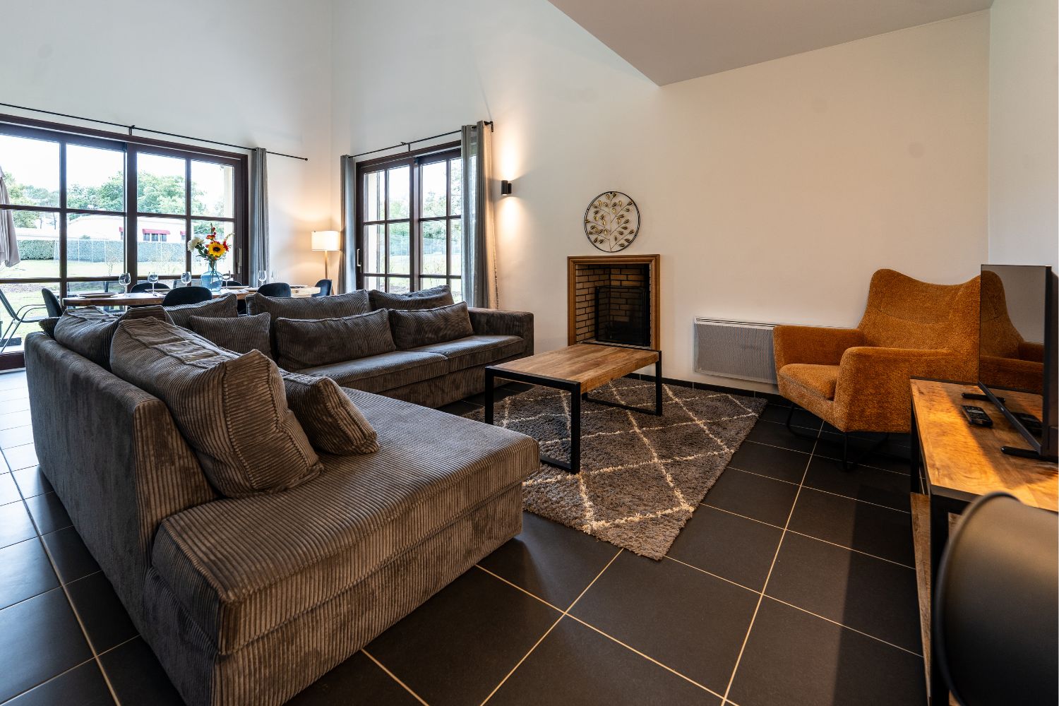 Ervaar de Graves villa, een ruime vakantiewoning van 115 vierkante meter, ontworpen voor zes gasten. De open woonkamer is het hart van de woning en beschikt over een gezellige zithoek met een flatscreen-tv en open haard, evenals een eethoek perfect voor familiemaaltijden. De moderne keuken is een droom voor elke chef-kok, compleet met een groot kookeiland en ingebouwde apparatuur voor het bereiden van heerlijke gerechten.