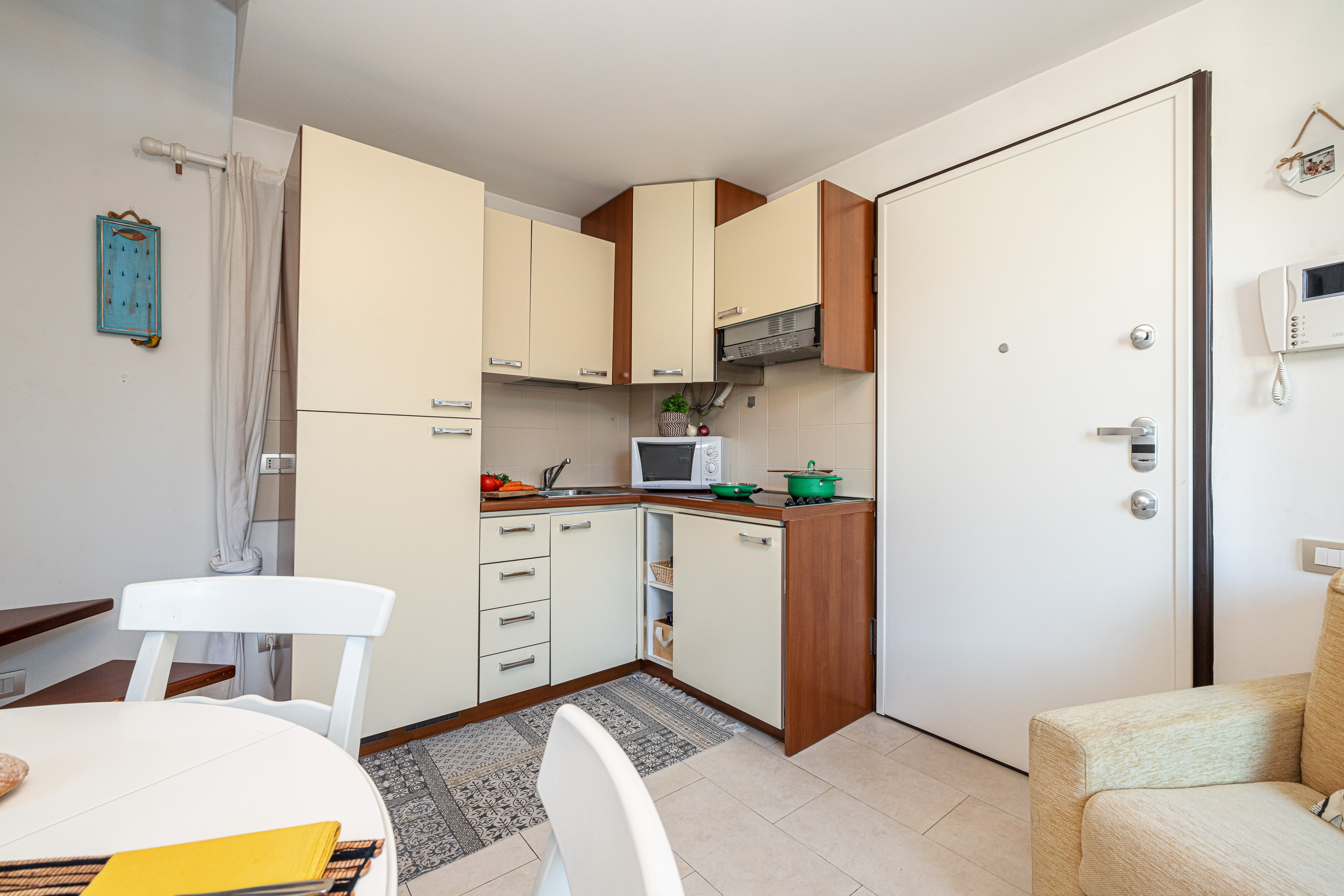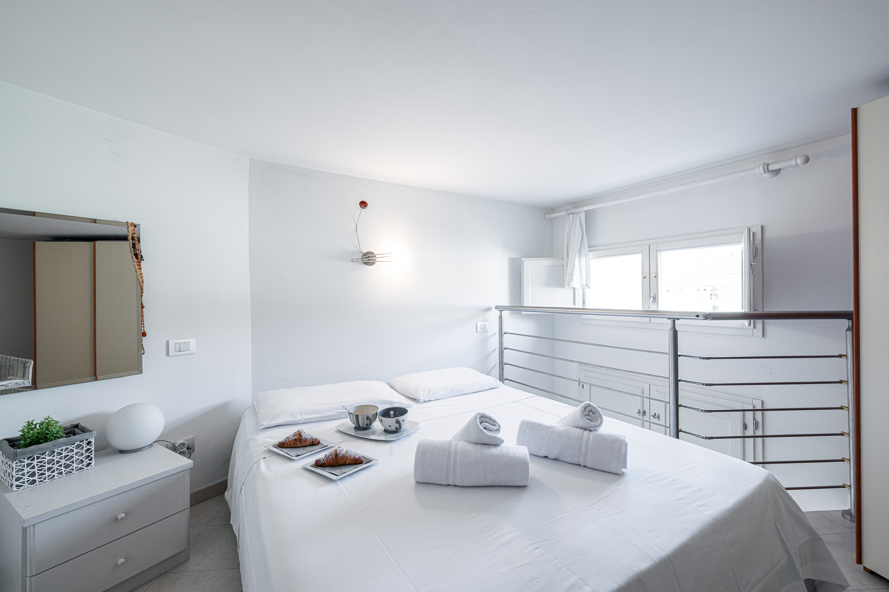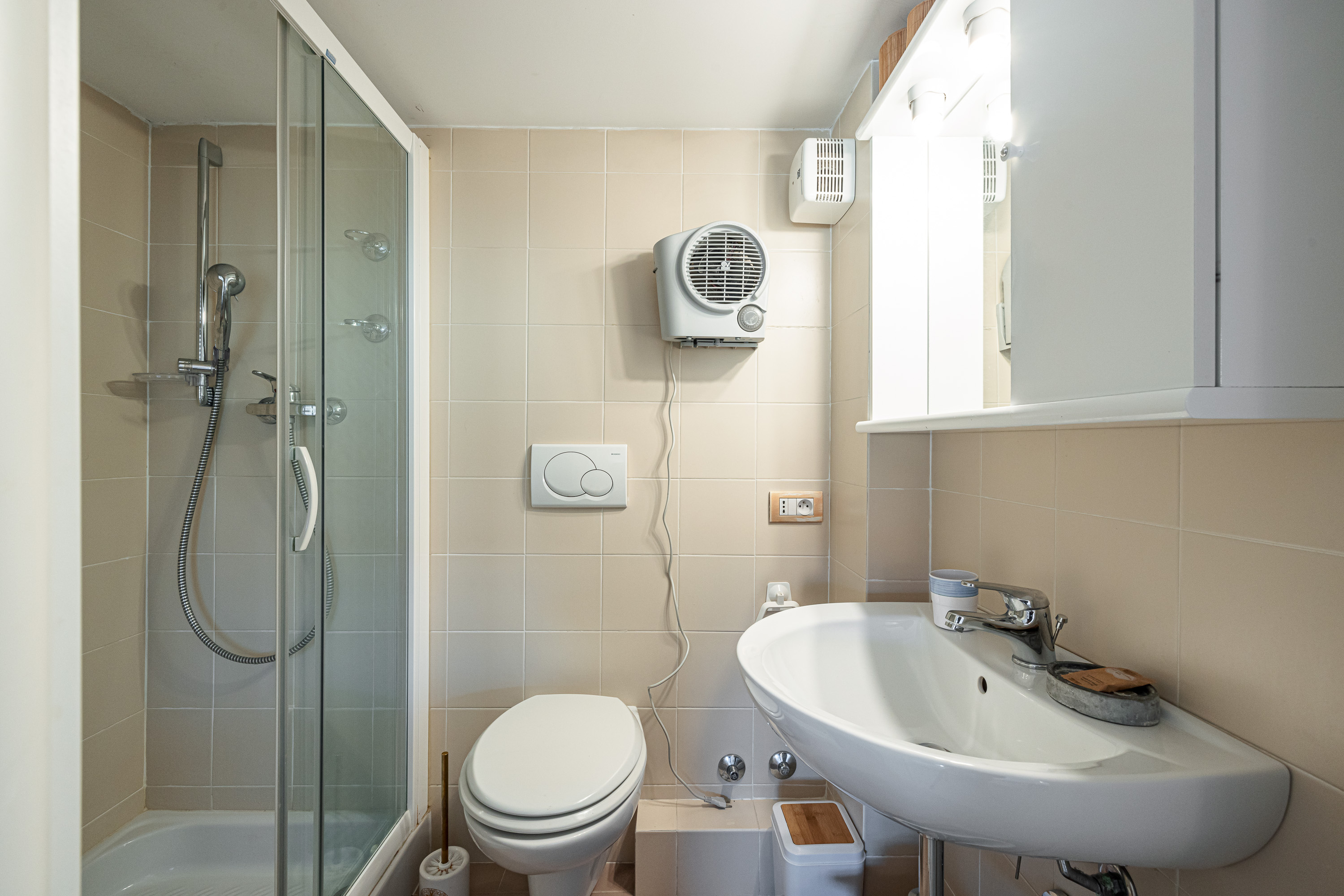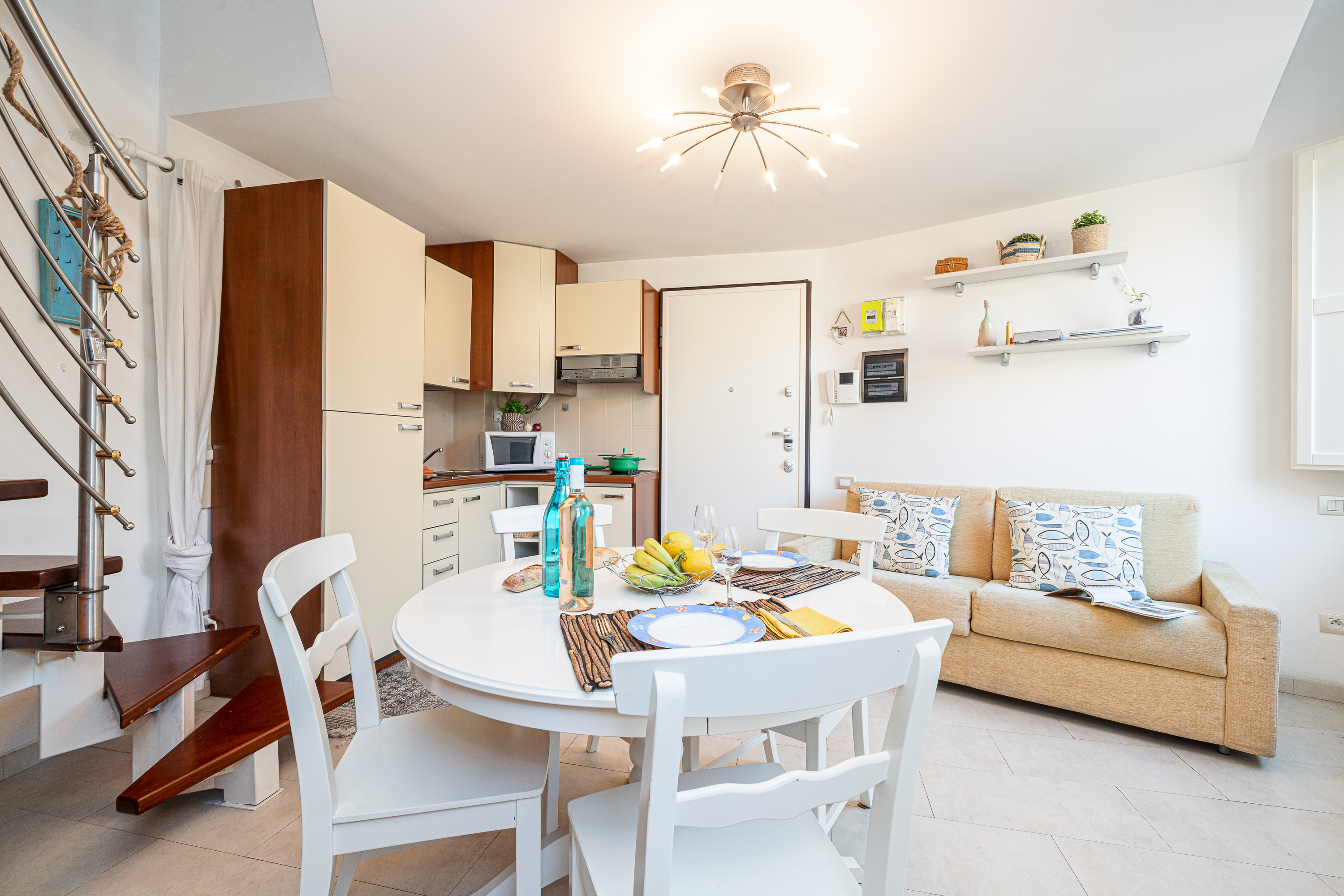 40 m² ruimte verdeeld over 2 verdiepingen met een tweepersoonsslaapkamer en badkamer op de 1ste verdieping, woonkamer en keuken op de begane grond met een slaapbank.