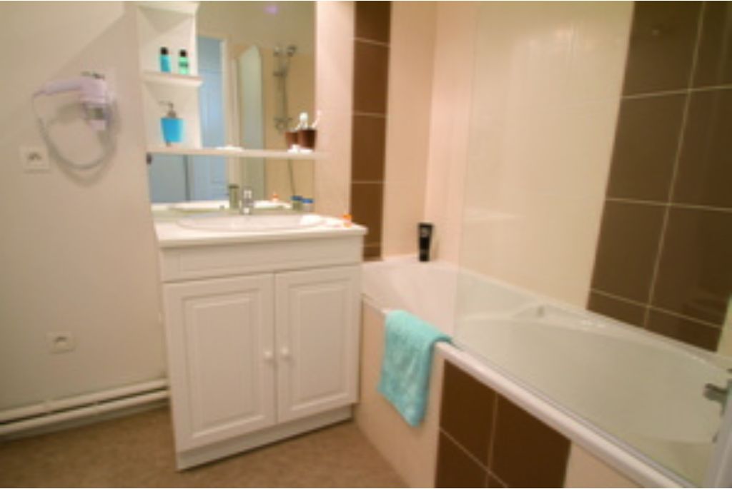 Badkamer met bad/douche, haardroger + geïntegreerd toilet