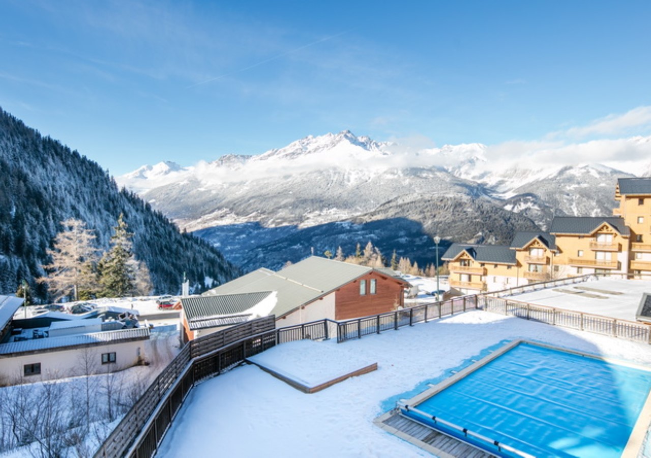 Het verwarmde buitenzwembad met panoramisch uitzicht op de bergen zal bijdragen aan een ontspannen verblijf.