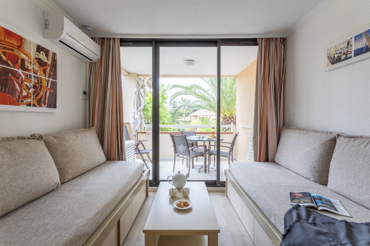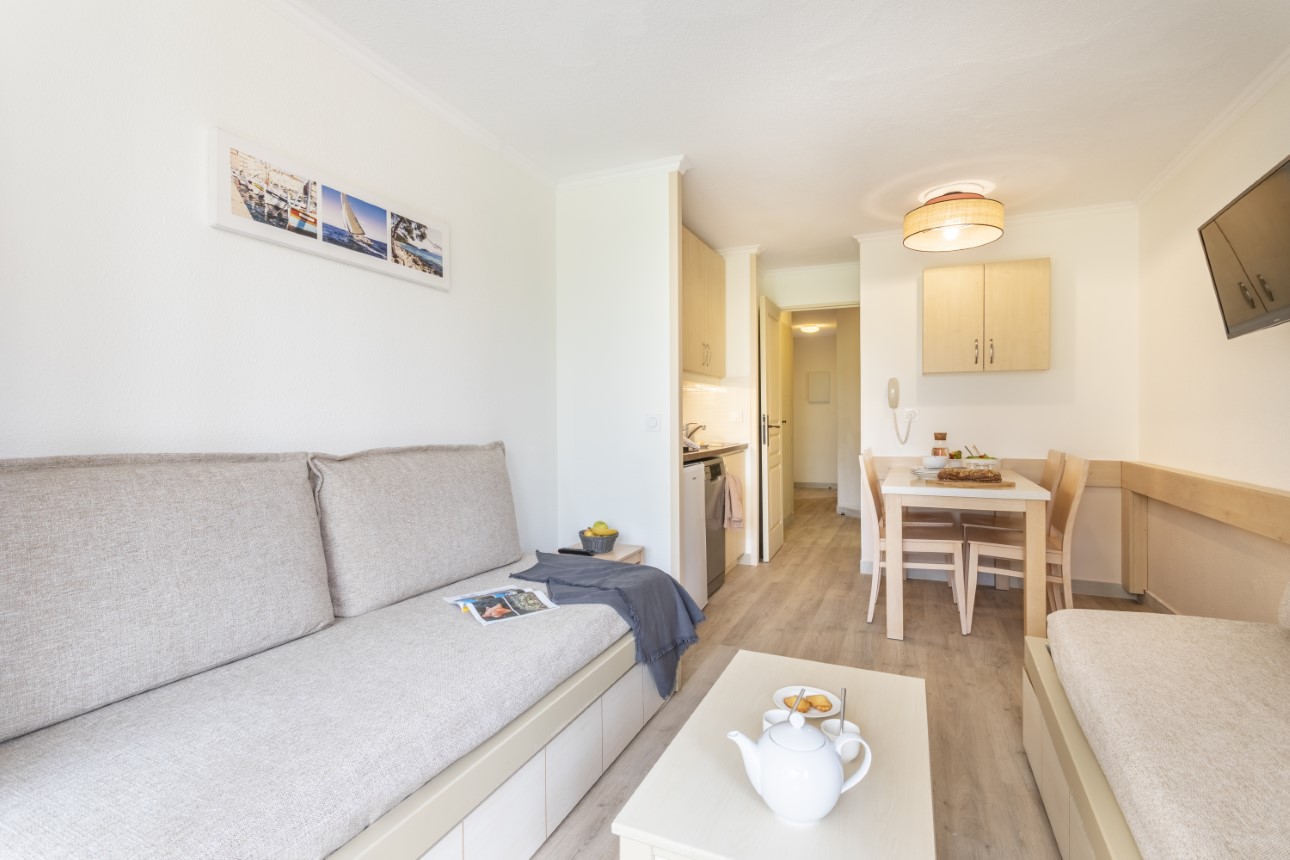 De residentie bestaat uit kleine gebouwen verspreid door het park en biedt een rustige omgeving. U verblijft in een licht en gastvrij appartement met een terras of balkon, met uitzicht op de tuinen of de zee, afhankelijk van de ligging.