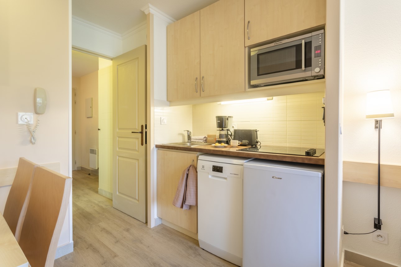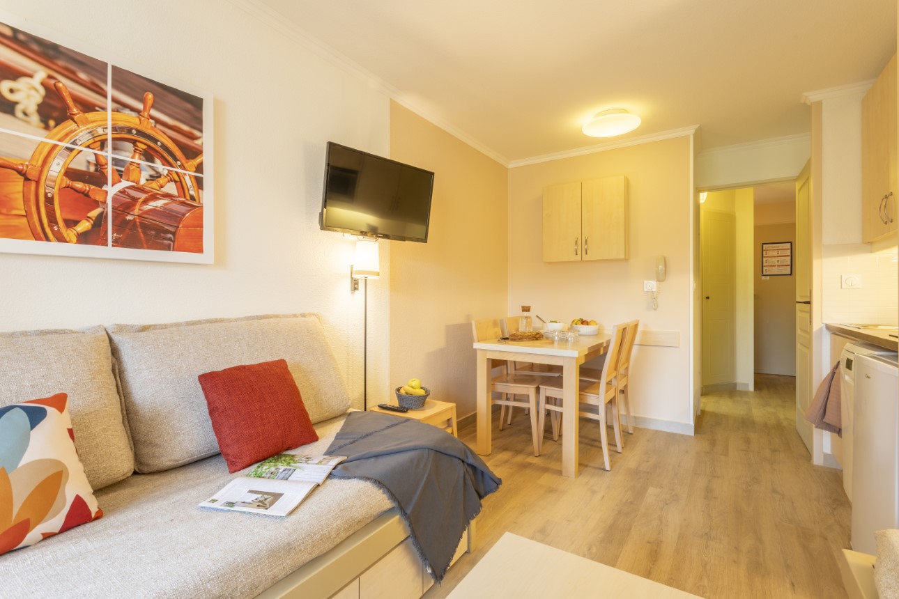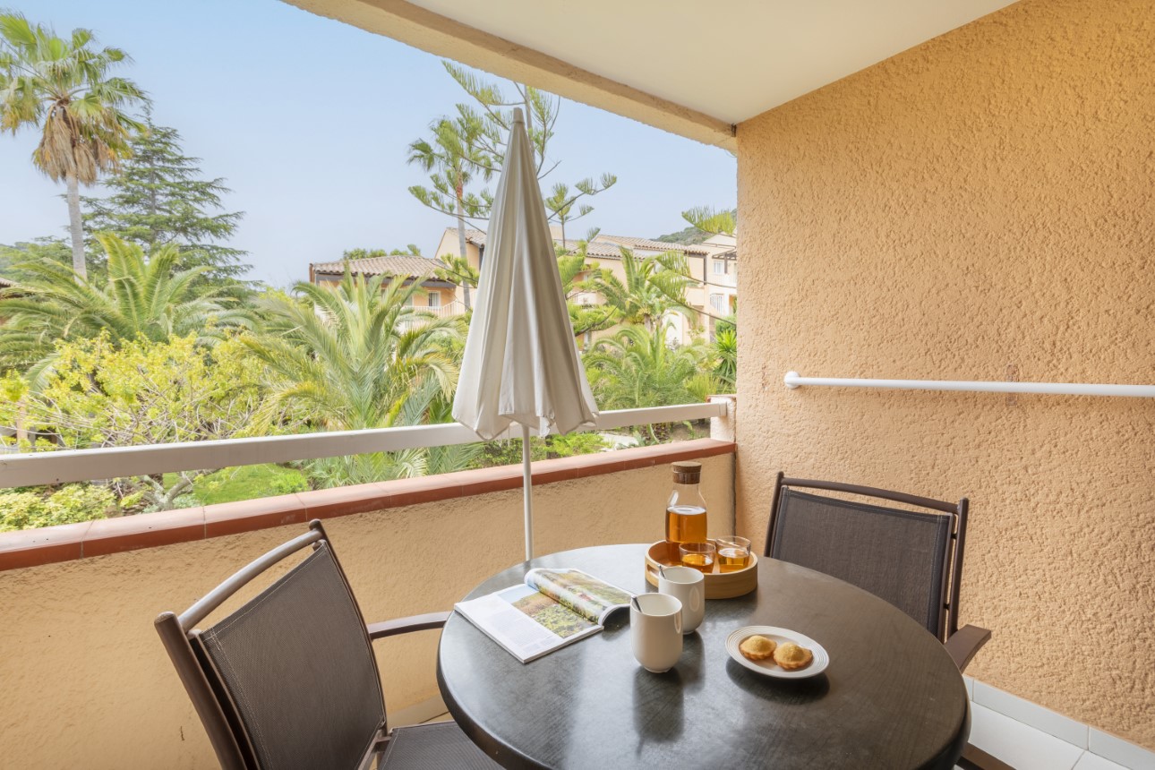 De residentie bestaat uit kleine gebouwen verspreid door het park en biedt een rustige omgeving. U verblijft in een licht en gastvrij appartement met een terras of balkon, met uitzicht op de tuinen of de zee, afhankelijk van de ligging.