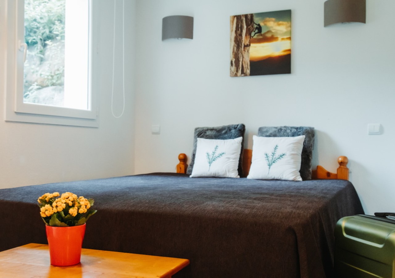 Woonruimte met een bed van 160 x 200 cm (voor 2 personen) of twee eenpersoonsbedden (2 x 80 x 200 cm) en een flatscreentelevisie