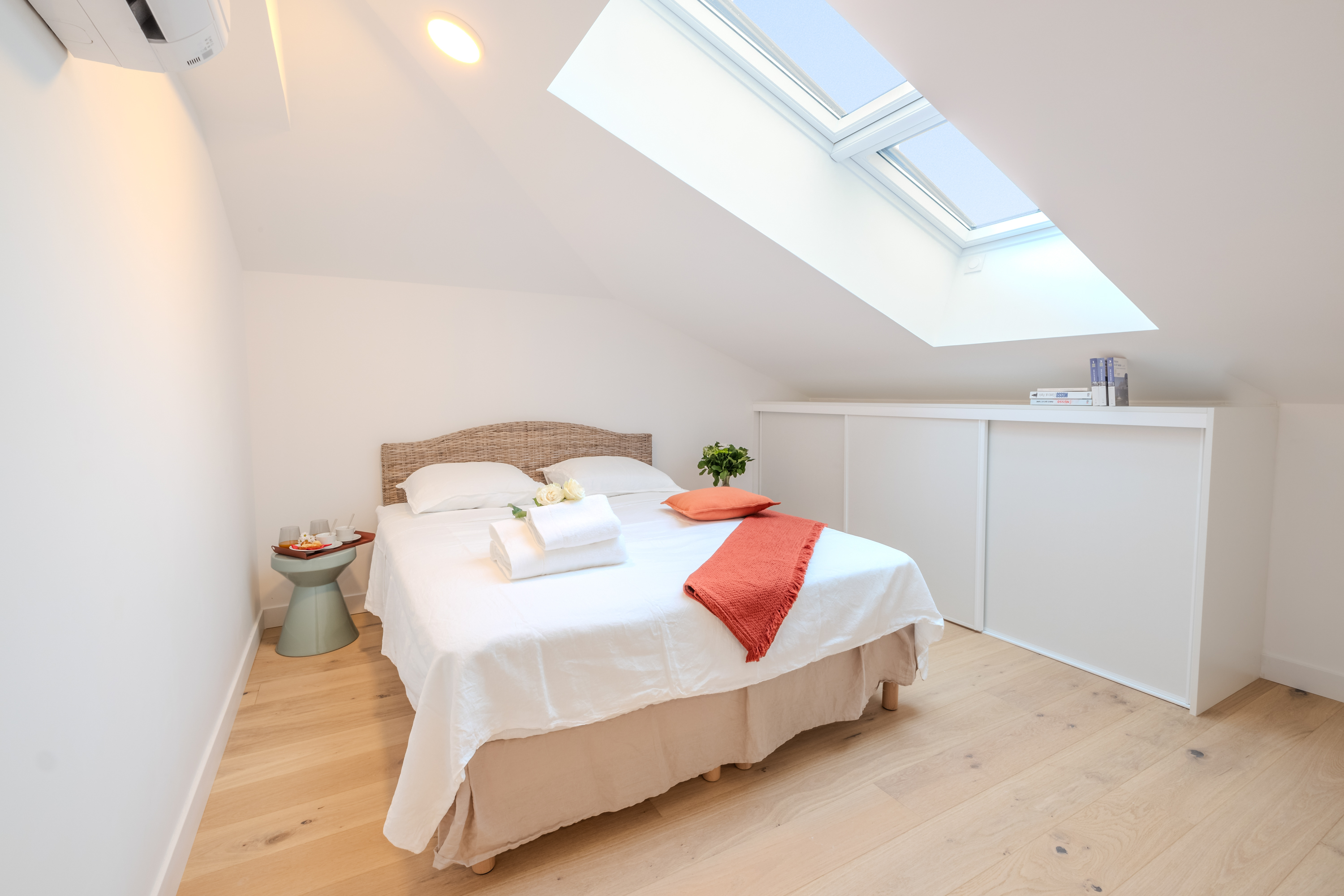 Slaapkamer 1: De eerste slaapkamer is ingericht met een tweepersoonsbed, kast en en-suite badkamer.