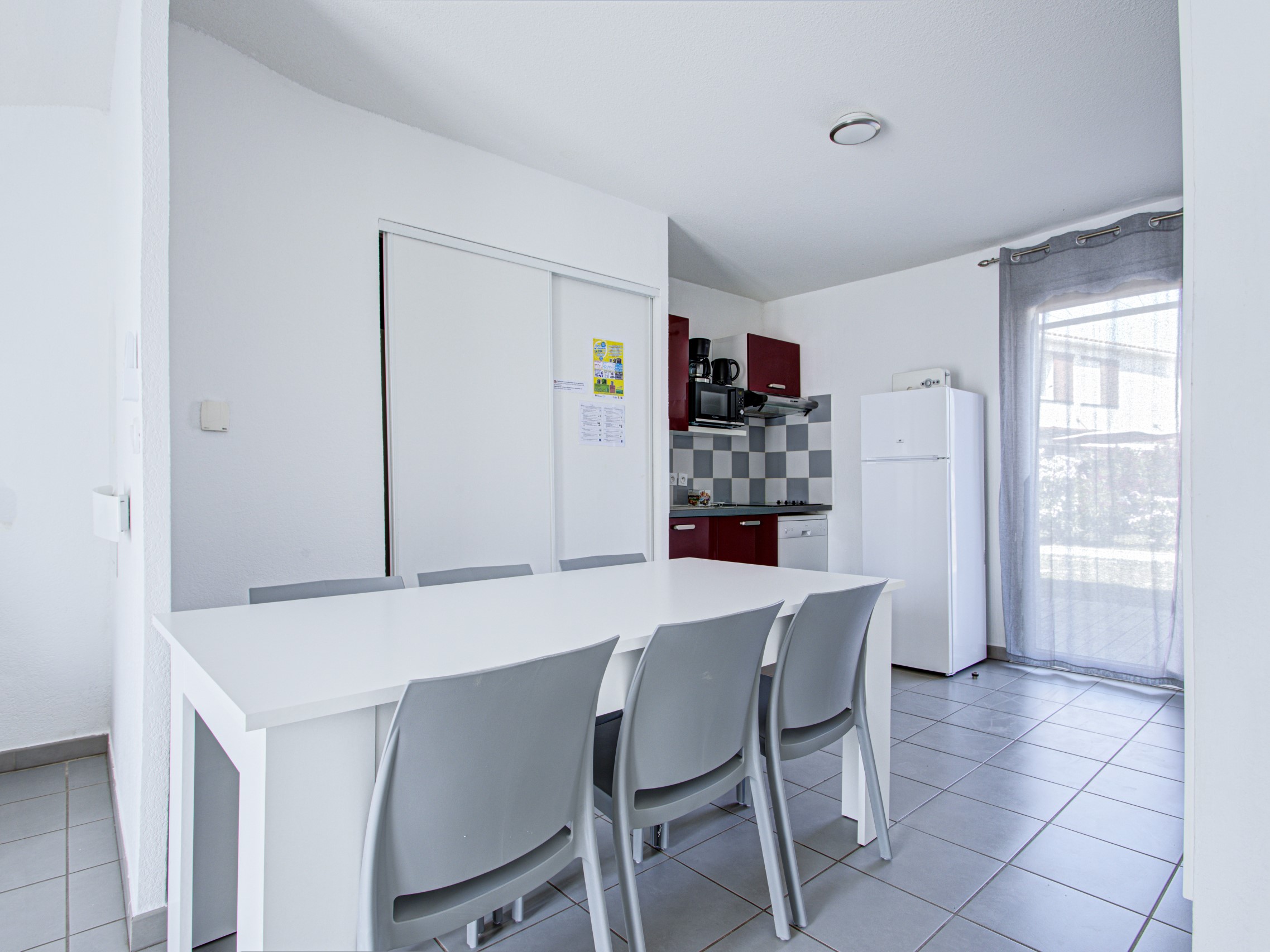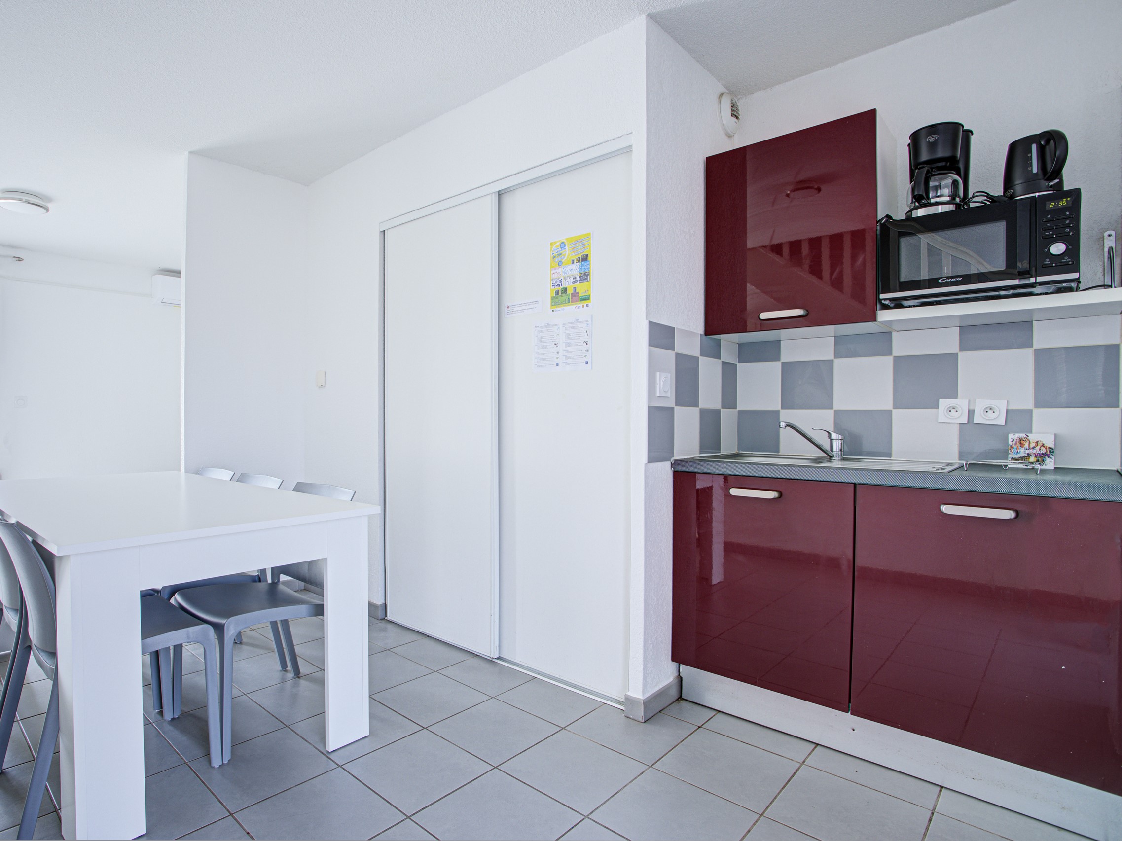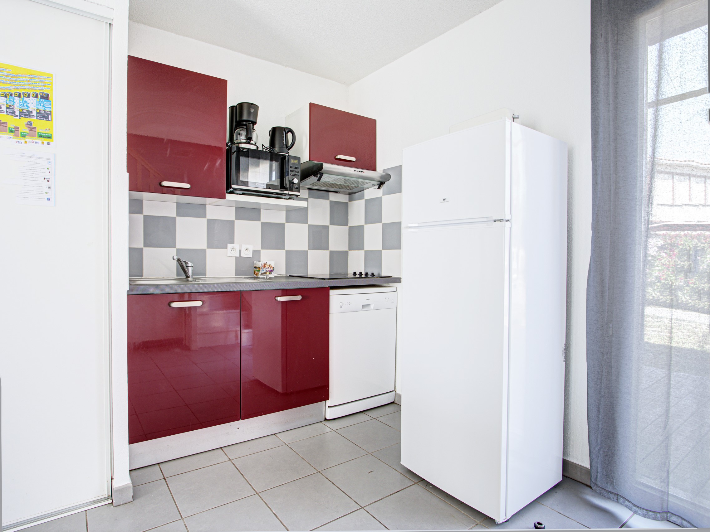 - Kitchenette: Volledig uitgerust met een koelkast, keramische kookplaat, magnetron, vaatwasser, filterkoffiezetapparaat, waterkoker en broodrooster – alles wat je nodig hebt om gemakkelijk een maaltijd te bereiden.