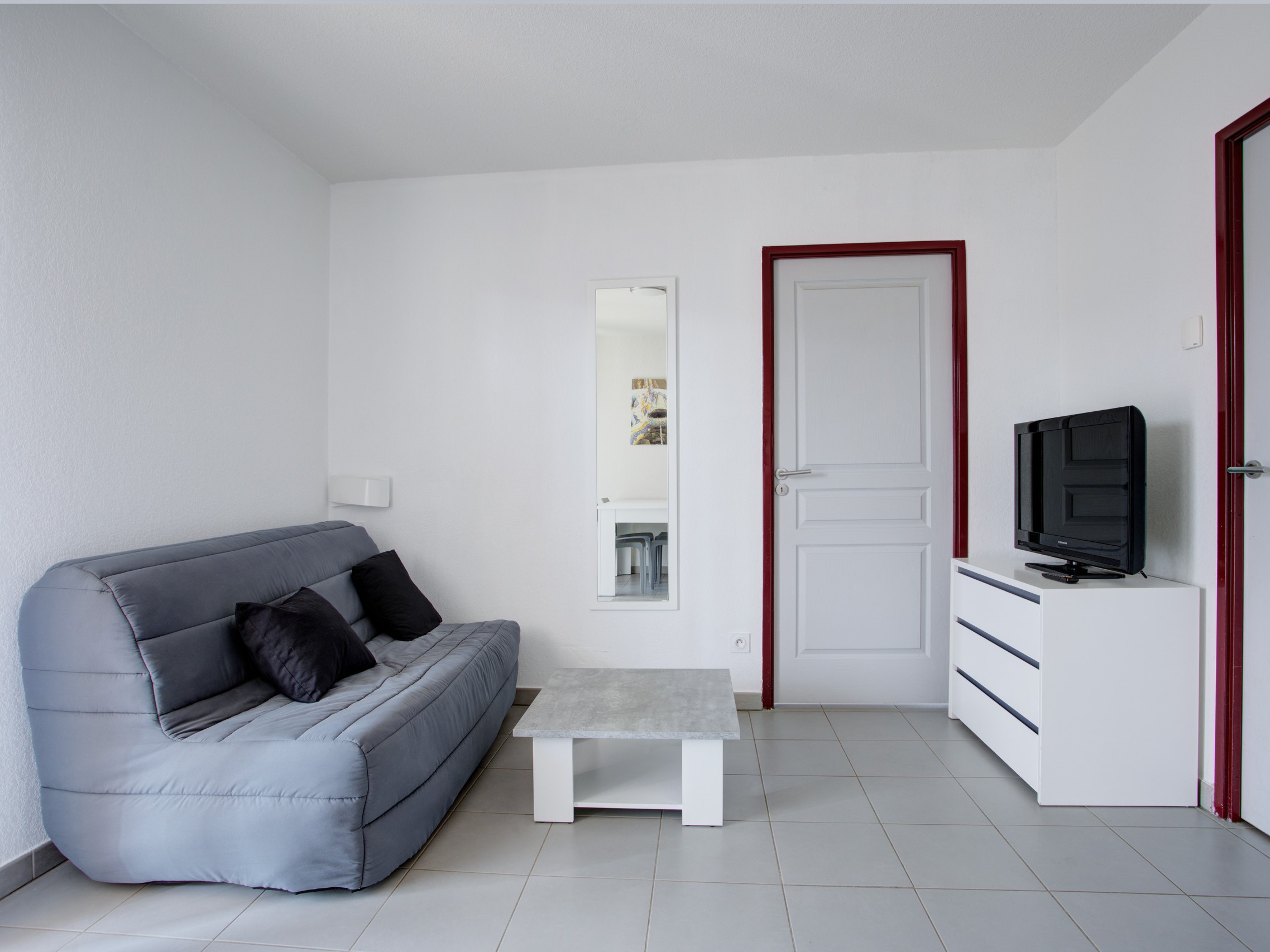 - Woonruimte: Inclusief een slaapbank voor twee personen (2 slaapplaatsen) en een flatscreentelevisie, perfect om tot rust te komen of te genieten van een filmavond.