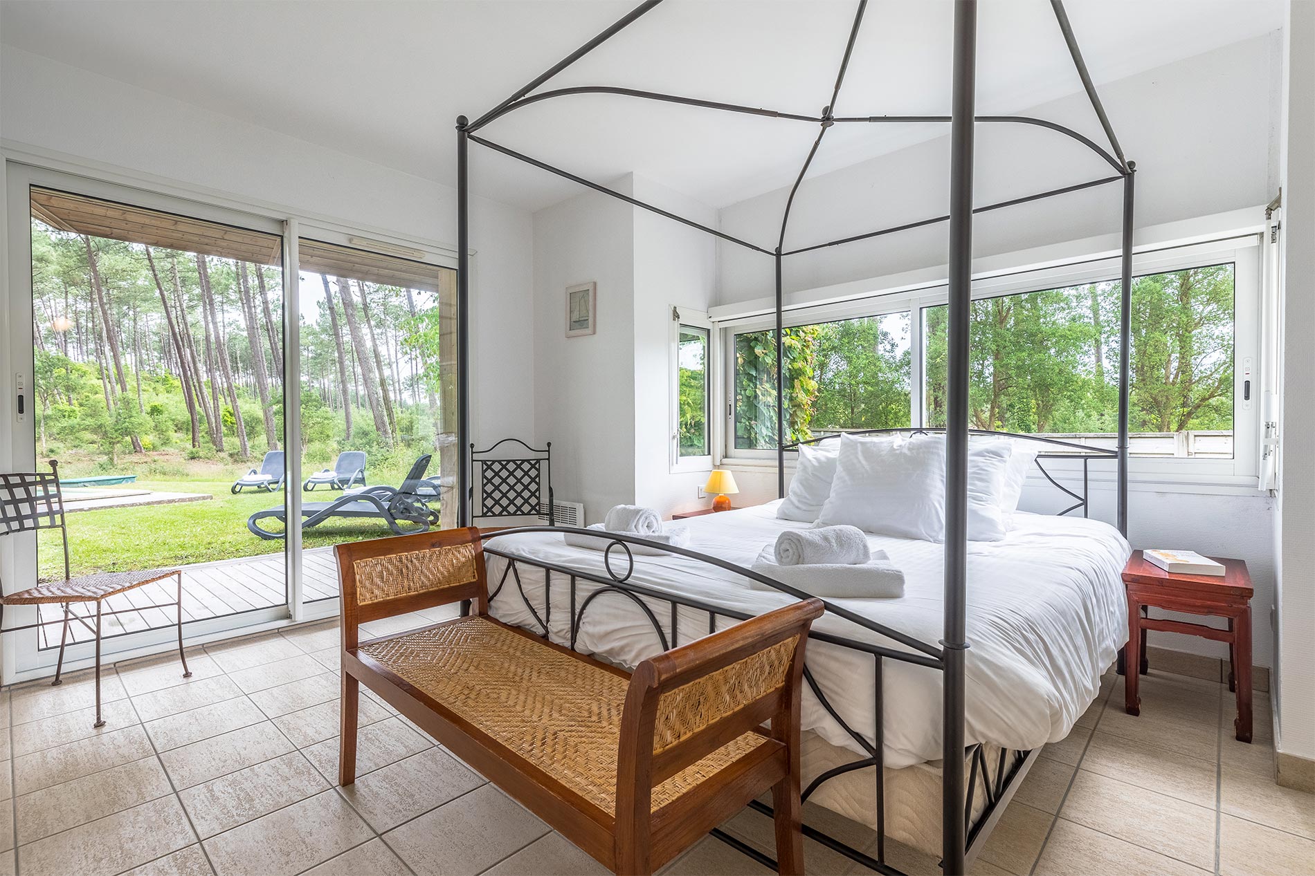 - Hoofdslaapkamer met directe toegang tot het terras en het zwembad