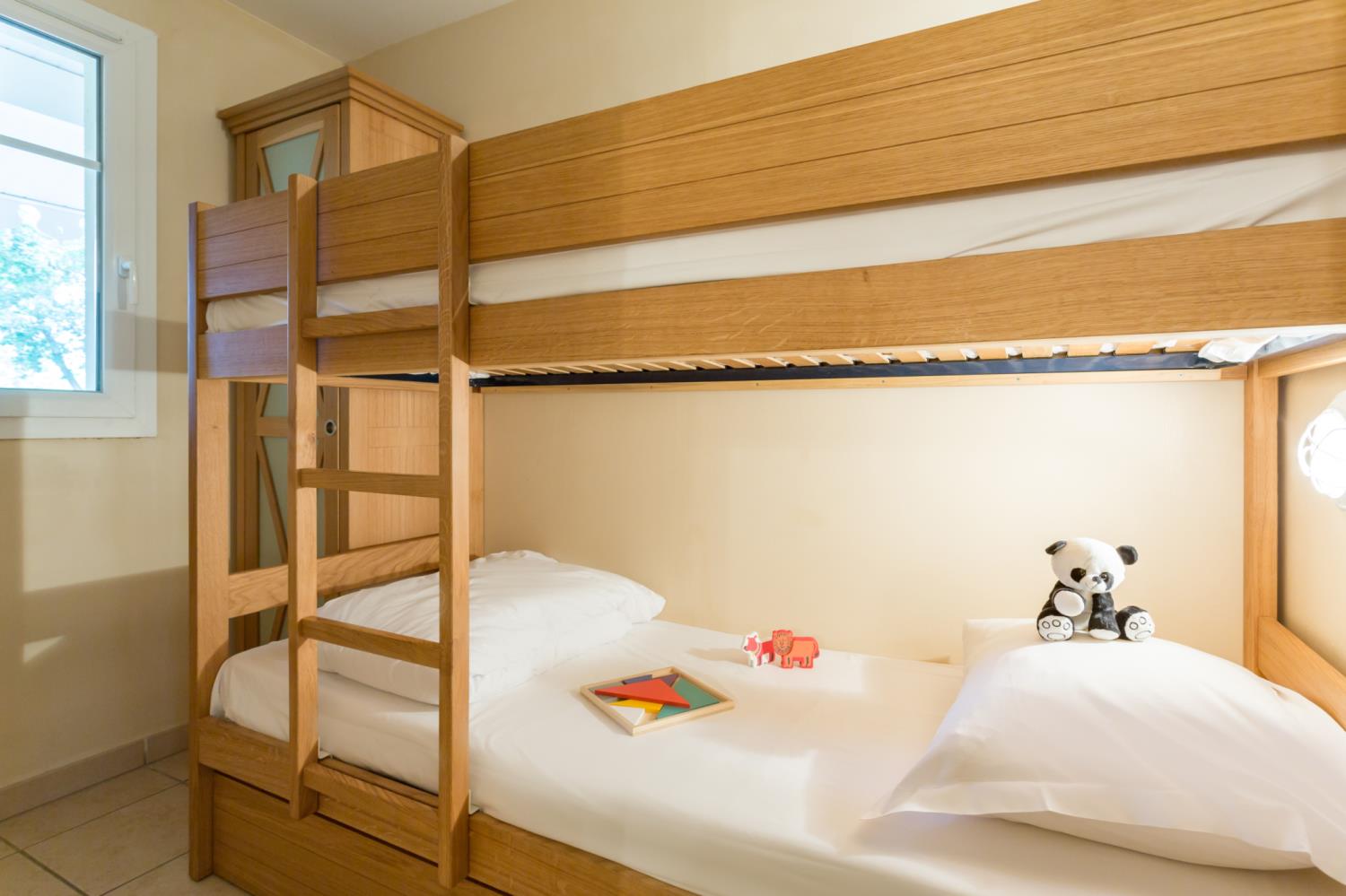 • Woonkamerfaciliteiten: 1 slaapbank met 1 onderschuifbed (aanbevolen voor kinderen) en 1 slaapalcove met stapelbedden (aanbevolen voor kinderen)