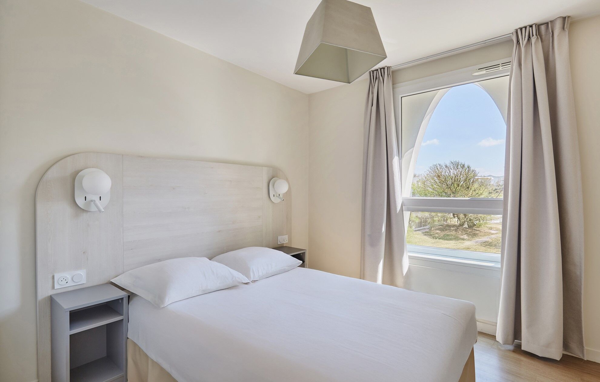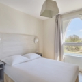 - Eén slaapkamer met ofwel een tweepersoonsbed (140 cm) of twee eenpersoonsbedden.