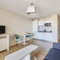Deze appartementen bevinden zich op de begane grond (westzijde/zeezicht) en op de 1e en 2e verdieping (oostzijde/thalasso-uitzicht).
