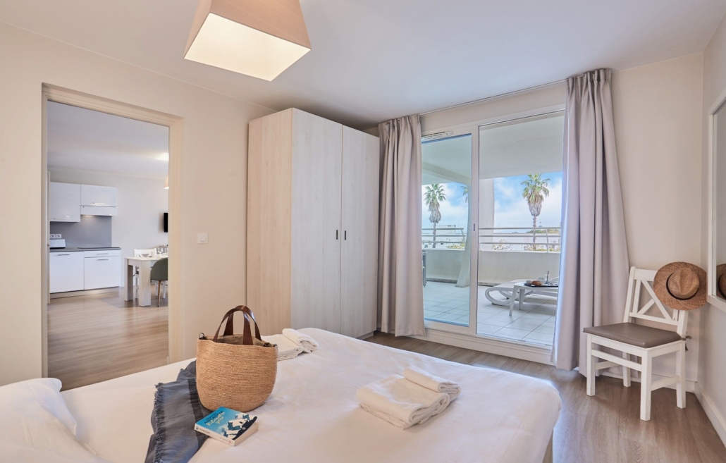 Ontdek een zonovergoten toevluchtsoord in La Grande Motte, een charmante badplaats in de Hérault, beroemd om zijn uitgestrekte zandstranden en de harmonieus geïntegreerde vier verdiepingen tellende architectuur met liften, die 70 appartementen (vele met een terras of loggia) herbergt. Kies voor een rustgevende en revitaliserende vakantie door te verblijven in Résidence les Dunes du Soleil, perfect gelegen op een steenworp afstand – slechts 20 meter – van het strand, ideaal om volop te genieten van de geneugten van de kust. De residentie ligt in de wijk Point Zero, gunstig gelegen nabij voorzieningen, met winkels op slechts 400 meter afstand en het Thalassotherapiecentrum La Grande Motte direct naast de deur. Vijf tweekamerappartementen ontworpen voor 4/5 personen bevinden zich op de toegankelijke begane grond (westzijde) om gasten met beperkte mobiliteit te accommoderen. De residentie biedt lifttoegang tot de meeste verdiepingen, aangewezen toegankelijke parkeerplaatsen binnen en buiten en toegangshellingen naar de gebouwen.