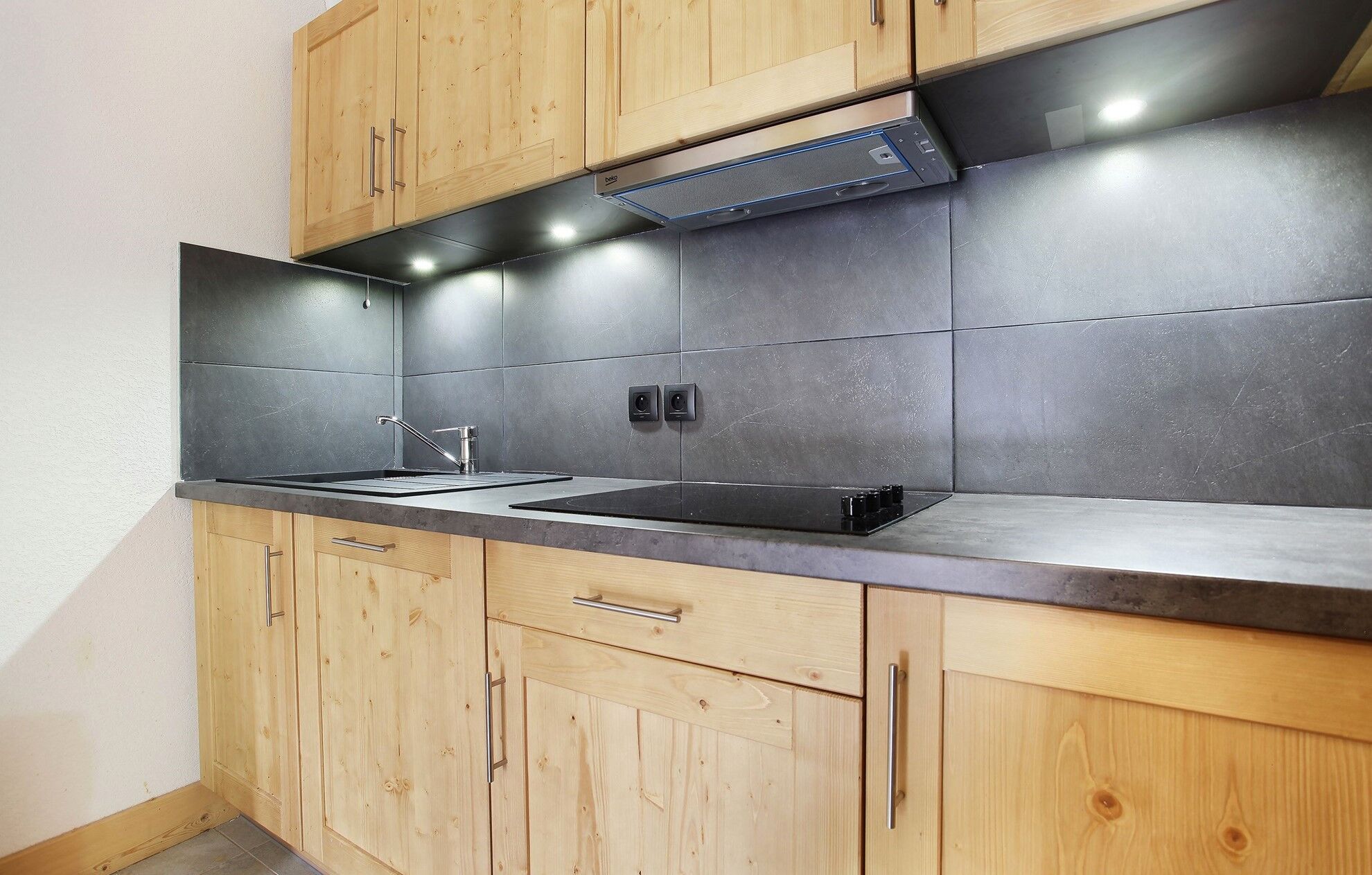 Uitgeruste kitchenette (vitrokeramische kookplaat, magnetron / grill, koelkast, afwasmachine)