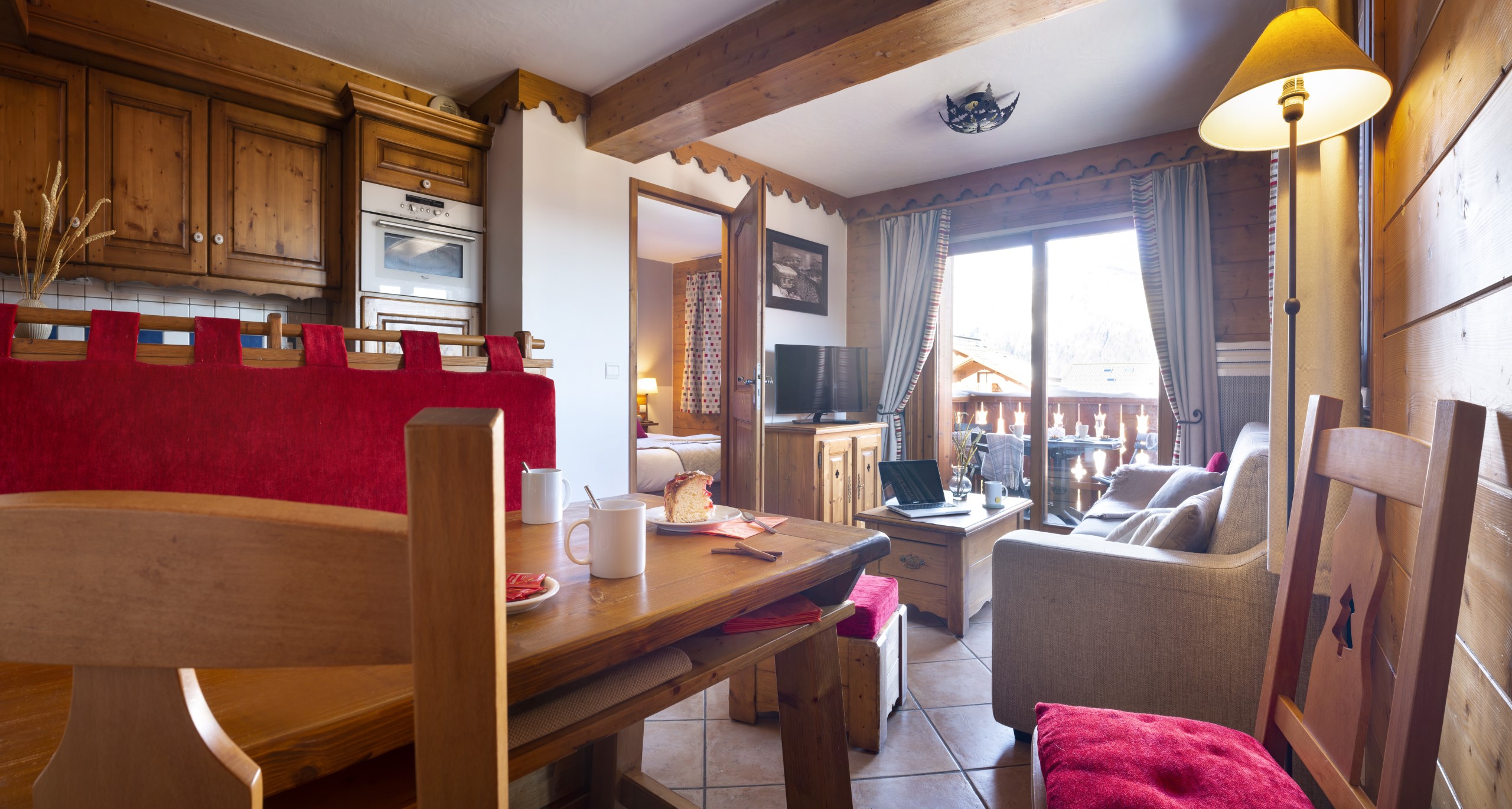 Ontdek het warme, gastvrije en authentieke karakter van een traditioneel bergdorp. Les Fermes du Soleil is ideaal gelegen in een levendig resort waar u het hele jaar door kunt genieten van culturele evenementen en entertainment. De vijf chalets tonen traditionele Savoyaardse architectuur, met plavuizen en natuurstenen bestrating, en prachtige houten gevels. Binnen creëren natuurlijke materialen, veel hout en warme rode tinten een gezellige, alpine sfeer in elk appartement. Dag na dag kunt u vanaf uw balkon het pittoreske uitzicht op het dorp of de majestueuze omringende bergen bewonderen.