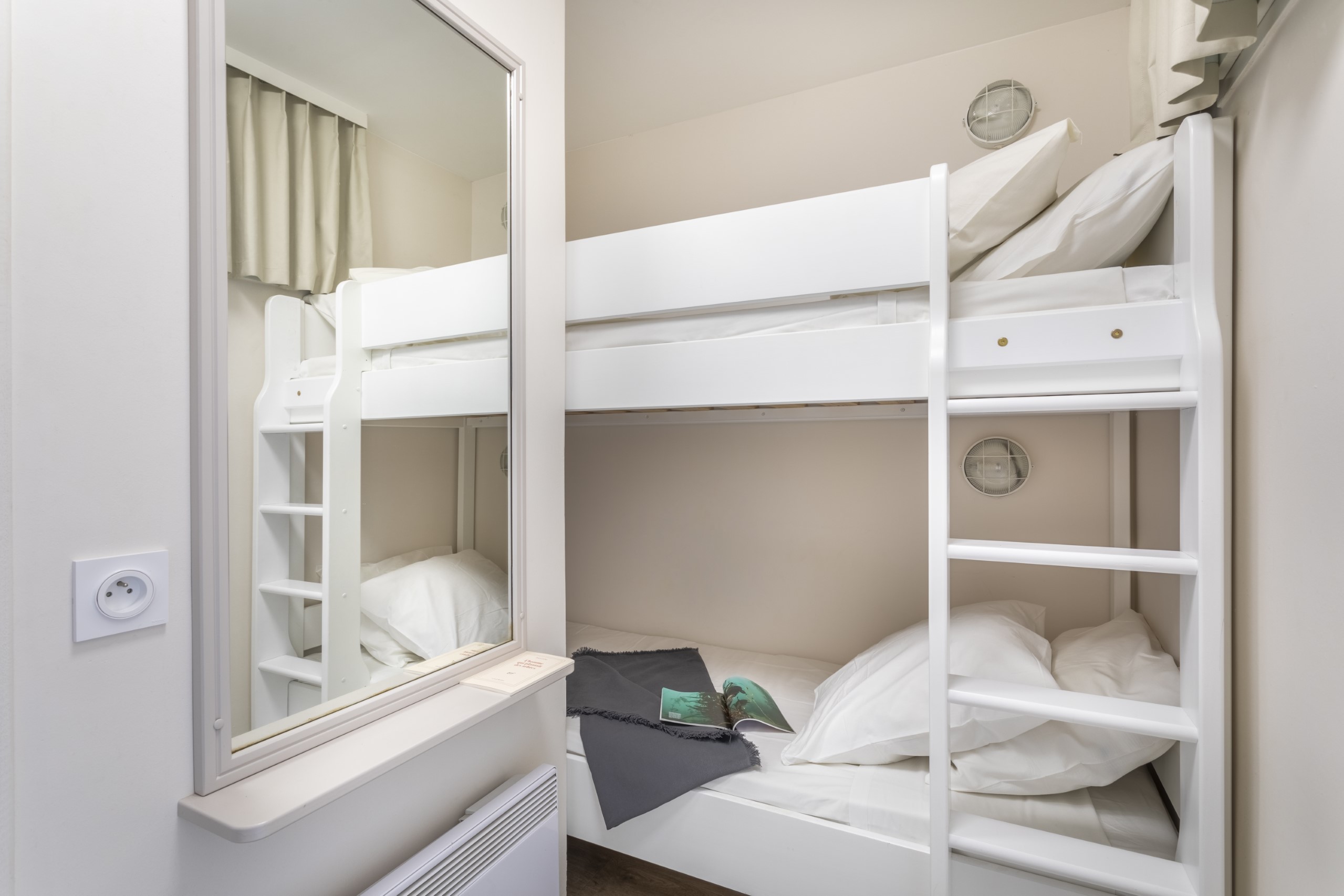 - Slapen: Woonruimte met 1 tweepersoonsbed en 1 daybed, slaaphoek met stapelbedden (aanbevolen voor kinderen)