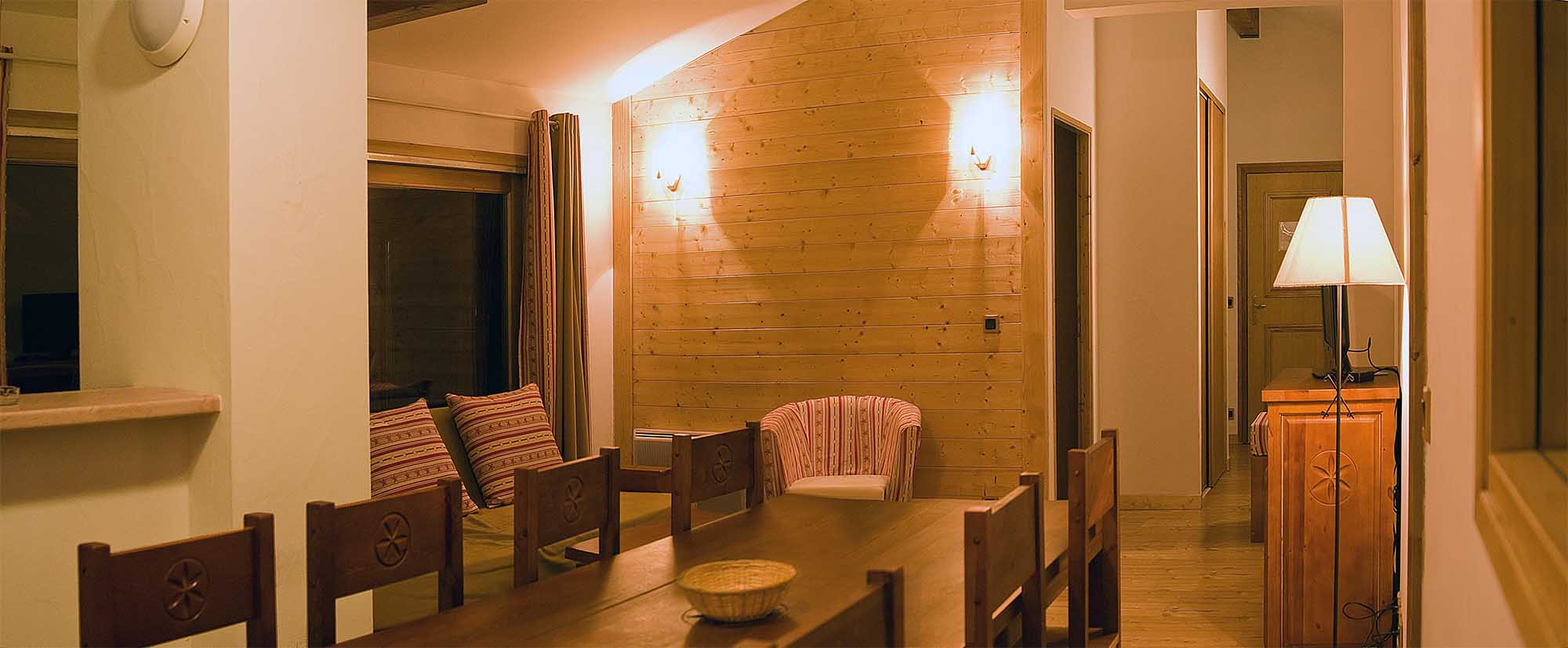 Dit appartement met 4/5 kamers met slaapcabine heeft een oppervlakte van 85-100 vierkante meter en is geschikt voor 11 personen. Het heeft een woonkamer met een slaapbank of 2 uitschuifbare slaapbanken, een slaapkamer met een tweepersoonsbed, een slaapkamer voor 3-4 personen, een slaapcabine of een kleine slaapkamer met een stapelbed en een slaapkamer en een mezzanine voor 1 of 2 personen. In sommige huizen, is er een extra slaapkamer met een tweepersoonsbed in plaats van de slaapbank in de woonkamer. Verder beschikt het appartement over een keukenhoek met een keramische kookplaat, magnetron, afzuigkap, koelkast, afwasmachine, wasmachine en droger, een badkamer, een doucheruimte, 2 toiletten en een balkon.