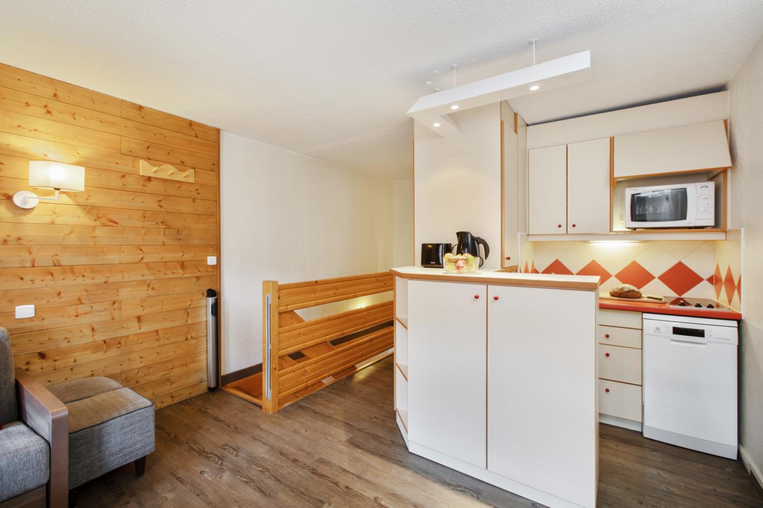 • Keukenfaciliteiten: Uitgeruste open kitchenette en woonkamer