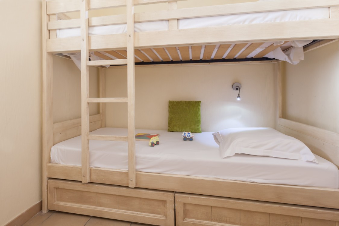 • Voorzieningen in de woonkamer: 2 slaapbanken, waarvan één met uitschuifbed (aanbevolen voor kinderen), en 1 slaapgedeelte met stapelbed (aanbevolen voor kinderen)