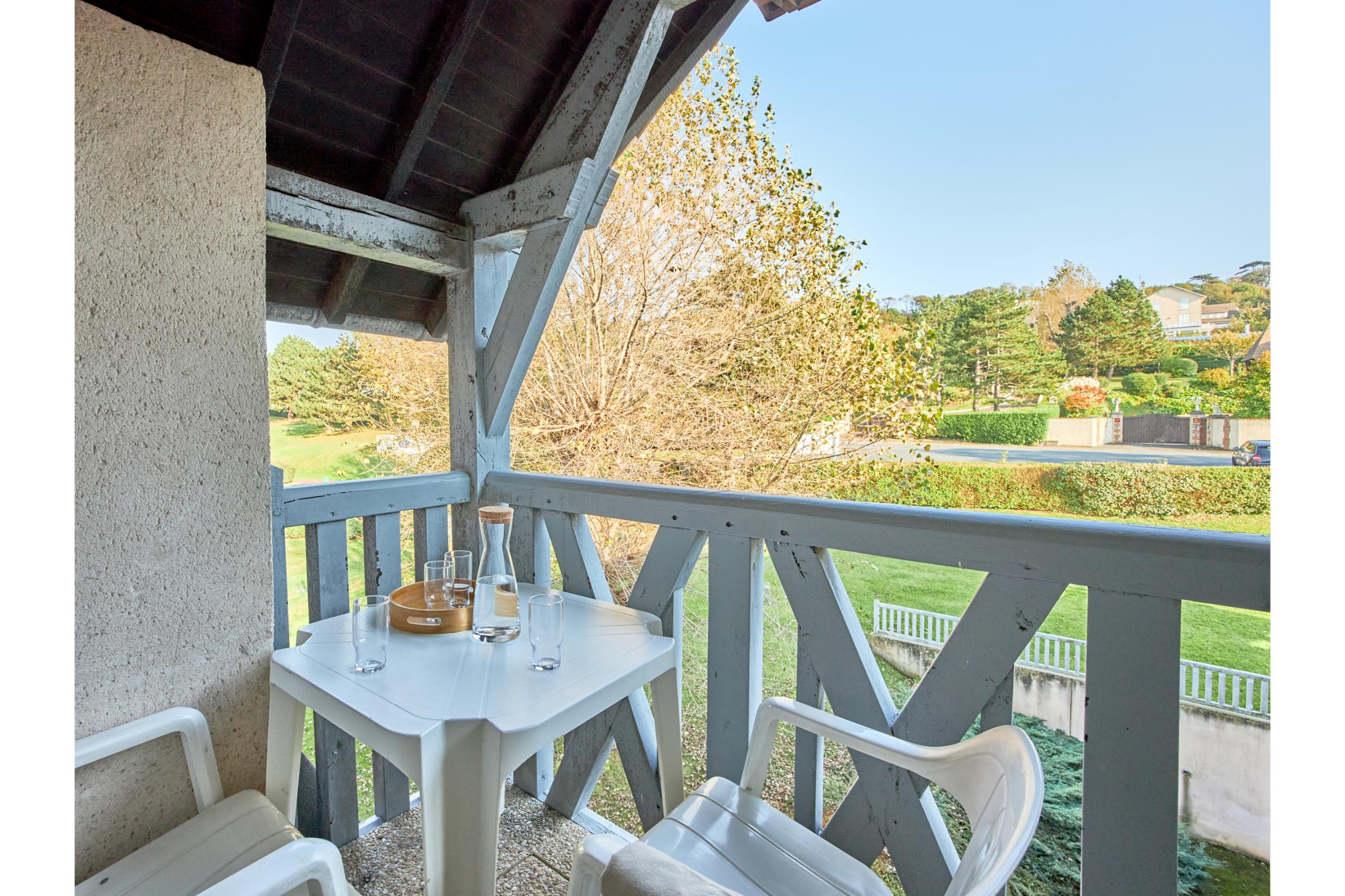 De locatie van de residentie is adembenemend, gelegen op een heuvel met ononderbroken uitzicht op de zee en de Côte Fleurie, omringd door serene, rustige landschappen. Les Tamaris, dicht bij Trouville, heeft een Normandische architectuur met pastelkleurige gevelbekleding, omgeven door een grote privétuin. Binnen zijn de studio’s van 25 m² ontworpen voor comfort, met een volledig uitgeruste kitchenette die uitkomt op de woonkamer. Elk appartement heeft een eigen balkon, perfect om te zonnebaden of te dineren met uitzicht, en sommige bieden zelfs direct uitzicht op zee.