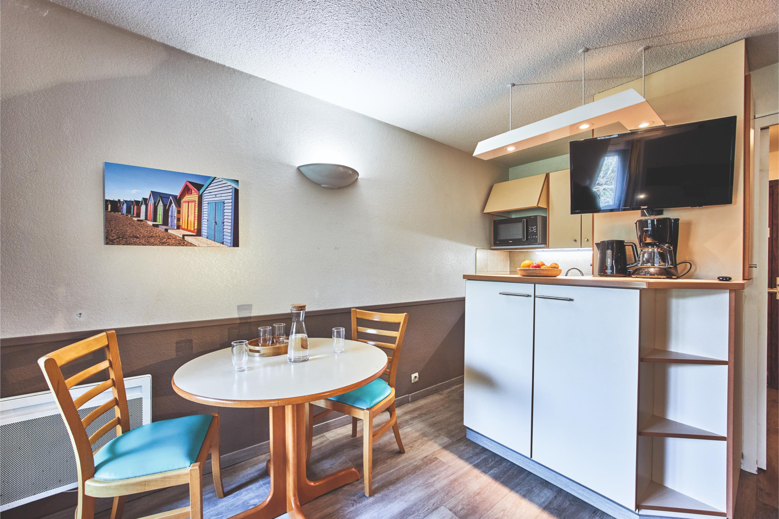 - Keuken: Open kitchenette, volledig uitgerust, geïntegreerd in de woonkamer