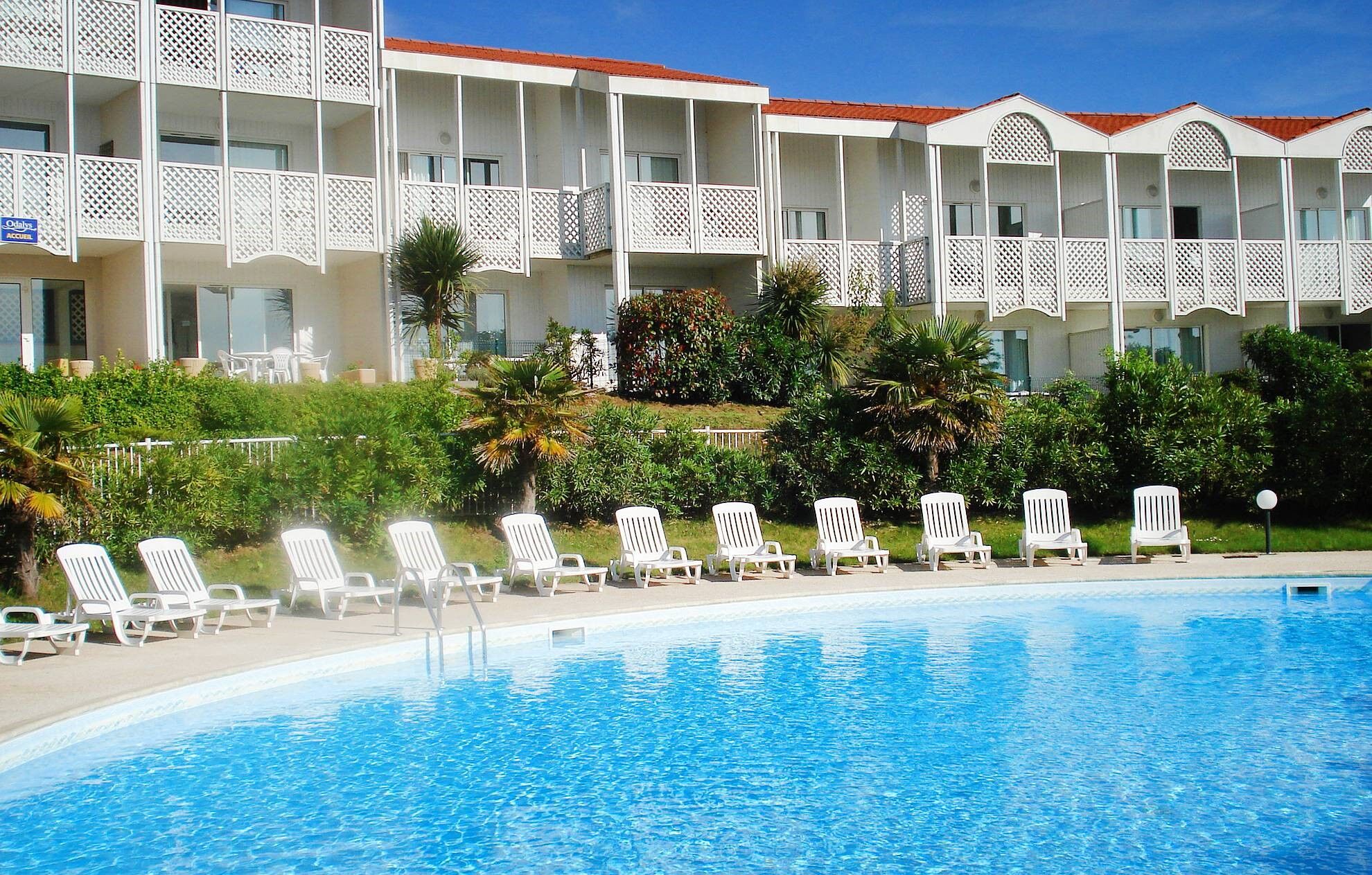 Tegenover het zuidelijke strand uitkijkend op de oceaan, staat de residentie ingenesteld tussen het kleine beekje, omgeven door de forten van Tour Vauban en aan de andere kant de steigers die uitlopen in de zee, slechts 350 meter van het stadscentrum, het zijn twee gebouwen met 2-3 verdiepingen met een lift naar de tweede verdieping, gebouwd om een zwembad heen.