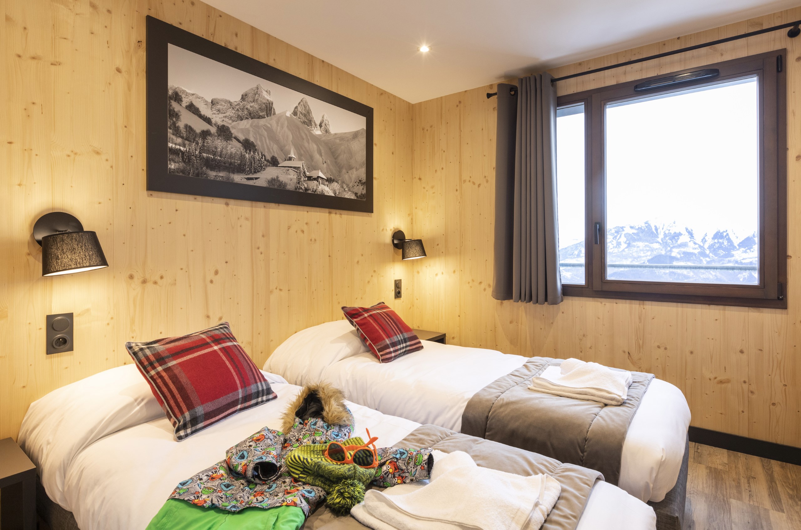 Na het skiën kunt u ontspannen in het verwarmde binnen-/buitenbad, op het zuidgerichte terras, of in de Aquarelaxant spa. Uw ruime, volledig uitgeruste appartement met balkon en panoramisch uitzicht biedt een warme bergsfeer.