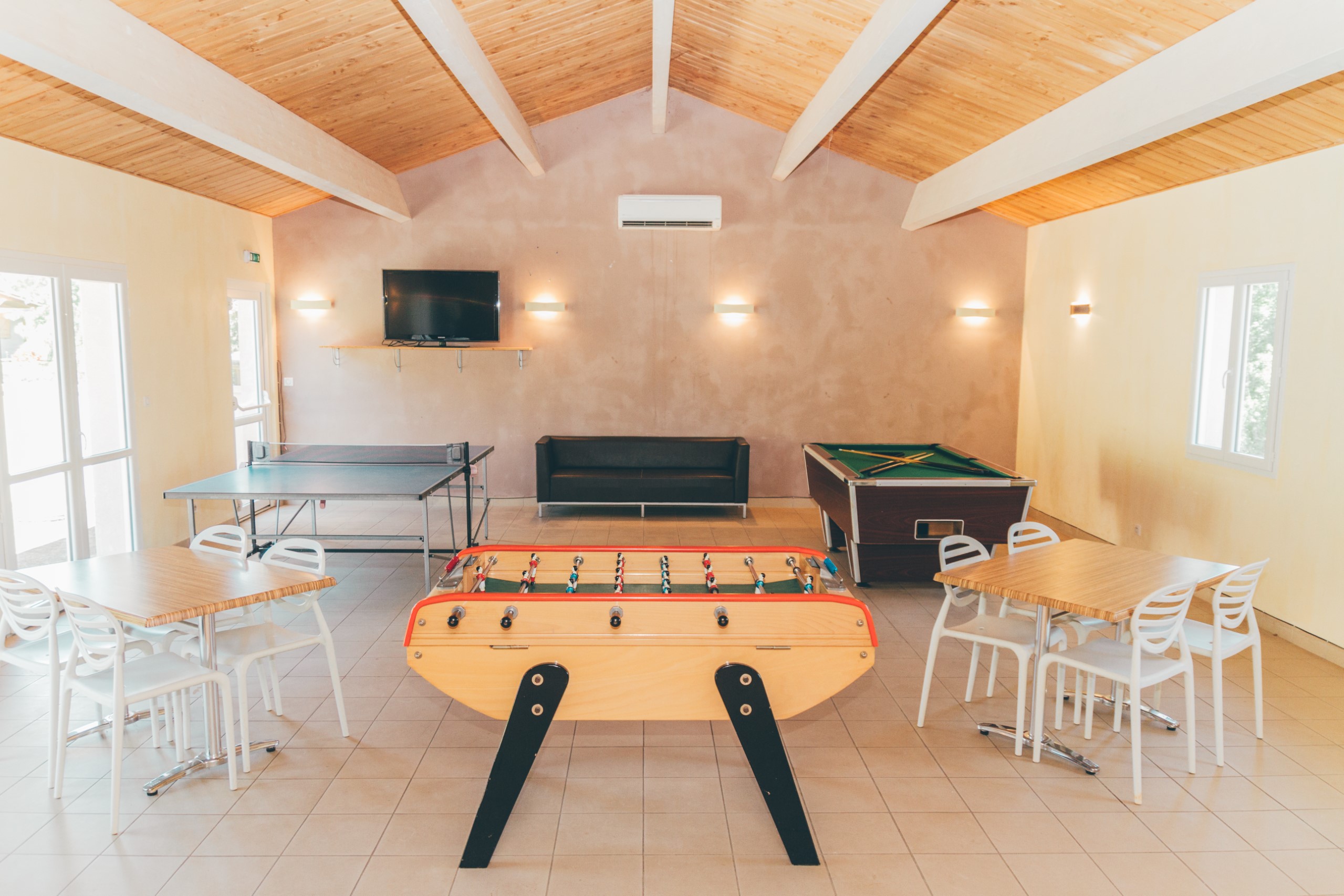 Dit chalet van 35 m² biedt plaats aan maximaal 6 personen en beschikt over een woonkamer met een eethoek, een slaapbank voor twee personen en een flatscreen-tv (tegen betaling). Het heeft ook een volledig uitgeruste keuken, twee slaapkamers en een badkamer. Eén slaapkamer is ingericht met een tweepersoonsbed, terwijl de andere drie eenpersoonsbedden heeft. De keuken is uitgerust met 4 elektrische kookplaten, een magnetron, een koelkast en een vaatwasser. De badkamer heeft een douche en wastafel, met aparte toiletten. Het chalet heeft ook een terras van 15 m² met tuinmeubilair.