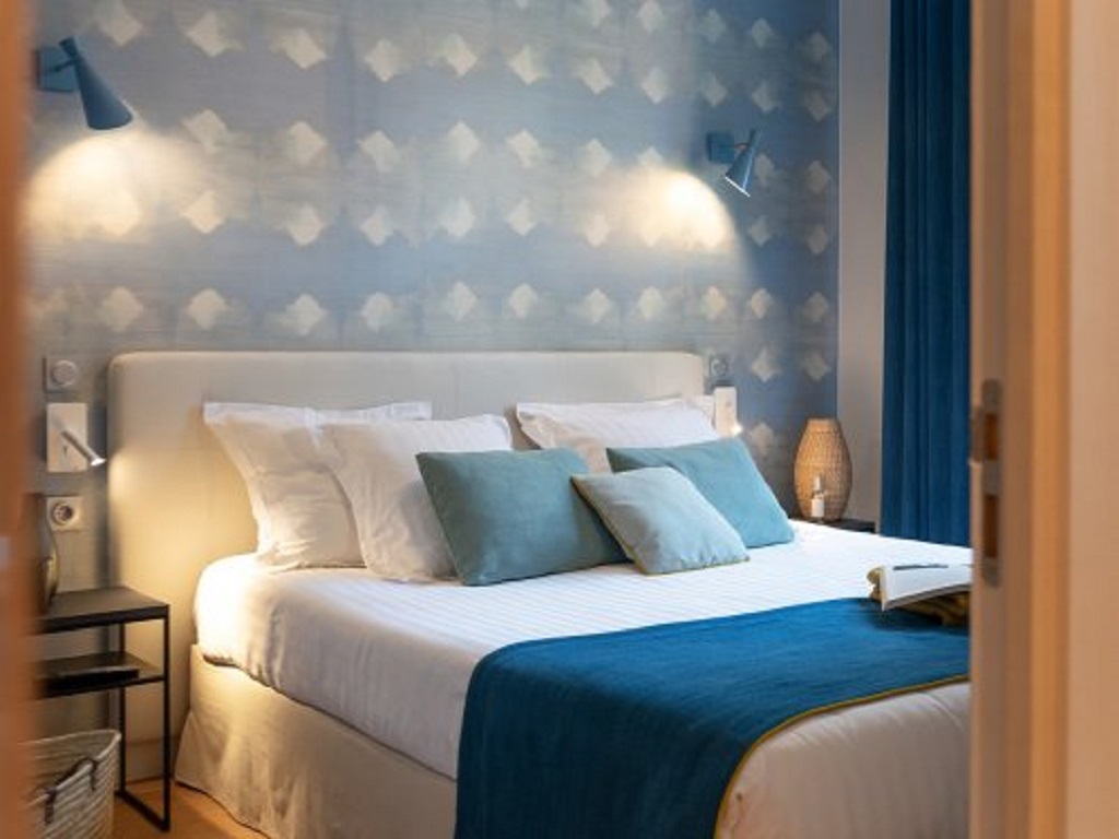 Onze residentie draagt trots haar vijf sterren en beschikt over de vakwerkstijl die typerend is voor de regio. De sfeer aan zee vindt u ook terug in uw lichte en functionele appartement, ingericht in blauwtinten en doordrenkt met Normandische elegantie. Ontspan zoals u zelden kunt, zittend op uw balkon of terras, genietend van de zon en uitkijkend over de haven, de tuinen of het zwembad.