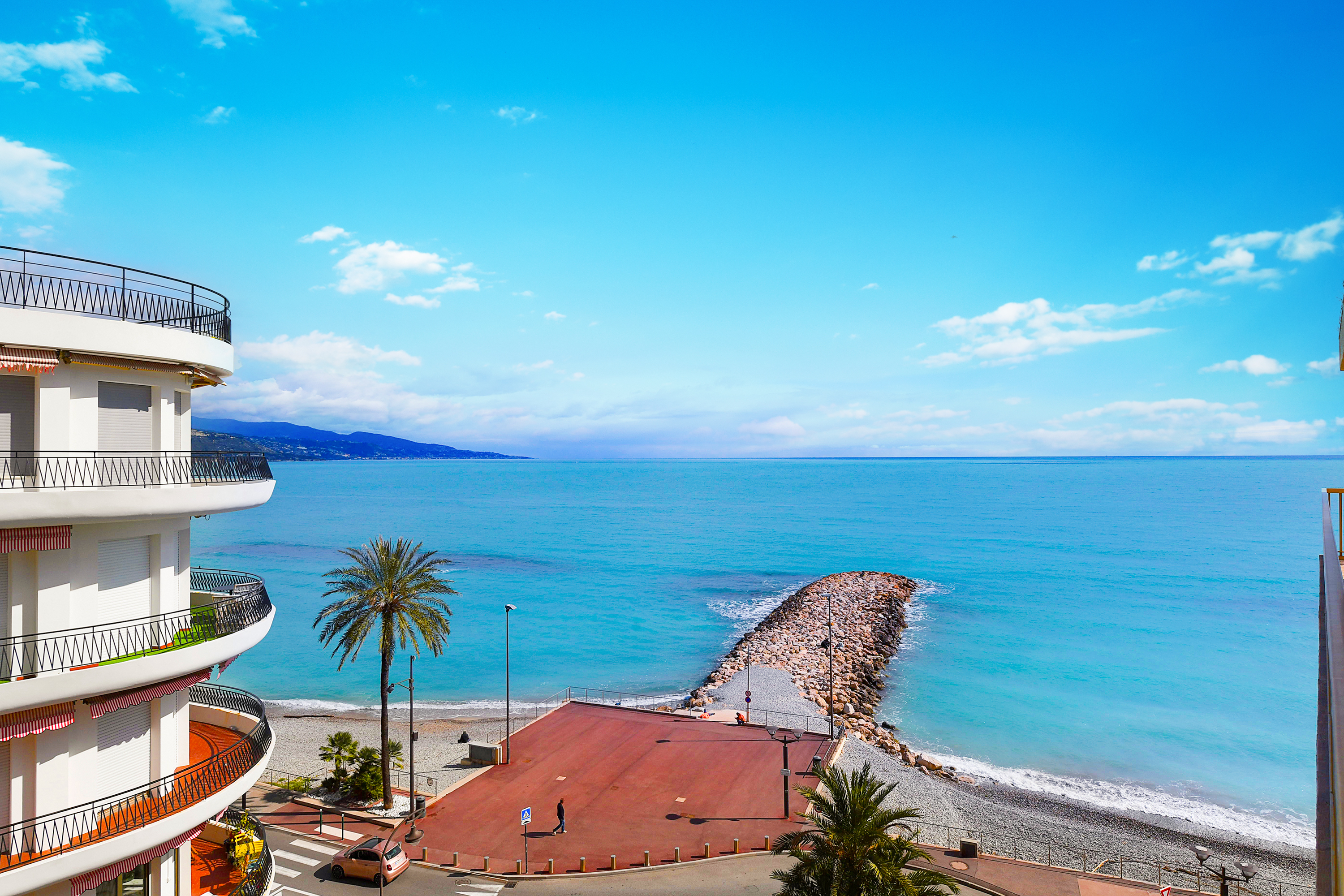– Een ruim terras met uitzicht op zee is open tot aan de Italiaanse grens.