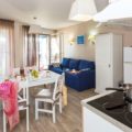 Dit 2-kamer appartement is geschikt voor 6 personen. Het heeft een woonkamer met twee slaapplaatsen, een kitchenette, een slaapkamer en een slaapgedeelte, elk met twee slaapplaatsen. Tot uw beschikking is er een badkamer met douche en toilet. De kitchenette is uitgerust met een keramische kookplaat, een magnetron / grill en een vaatwasser. Bedlinnen, televisie en WiFi toegang zijn inbegrepen in de huurprijs. Tegen een toeslag kunt u handdoeken, een babyset of eindschoonmaak huren. Huisdieren zijn toegestaan tegen een extra vergoeding als ze op het moment van de boeking worden vermeld en indien zij een geldig vaccinatiebewijs hebben. Honden moeten binnen de woning aangelijnd worden gehouden.