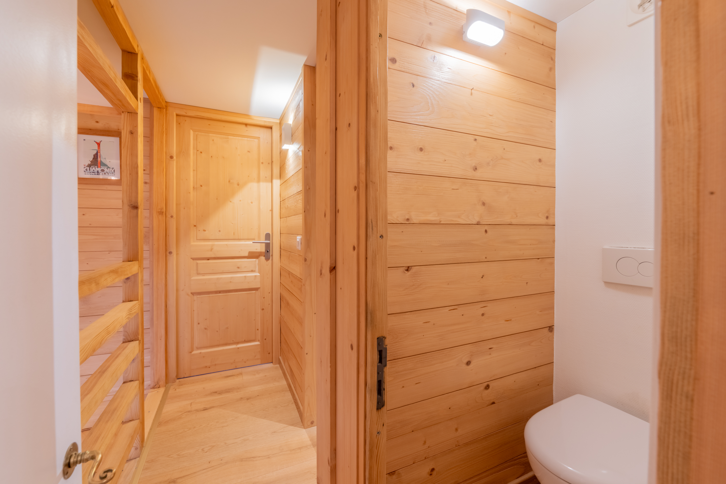 Het stijlvolle interieur van het appartement combineert een warme, uitnodigende sfeer met een open indeling. De woonkamer komt uit op een balkon met een tafel en stoelen – perfect om te genieten van het prachtige bergzicht. De moderne kitchenette is volledig uitgerust met praktische apparaten zoals een koffiezetapparaat, vaatwasser, waterkoker, oven, broodrooster en kookplaat, waardoor koken eenvoudig en plezierig is. Het appartement ligt op de tweede verdieping van een gebouw met drie verdiepingen en is licht en gastvrij.