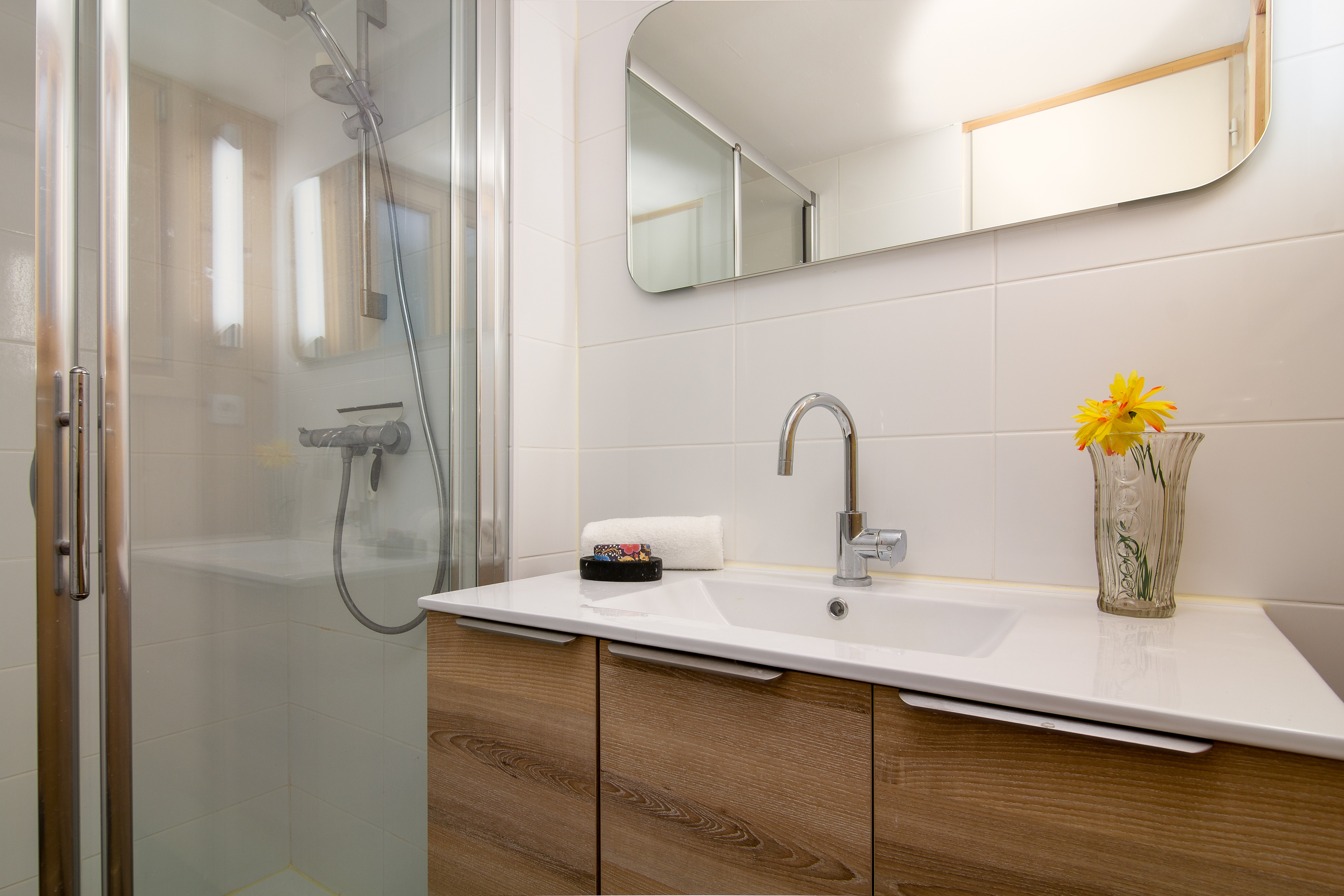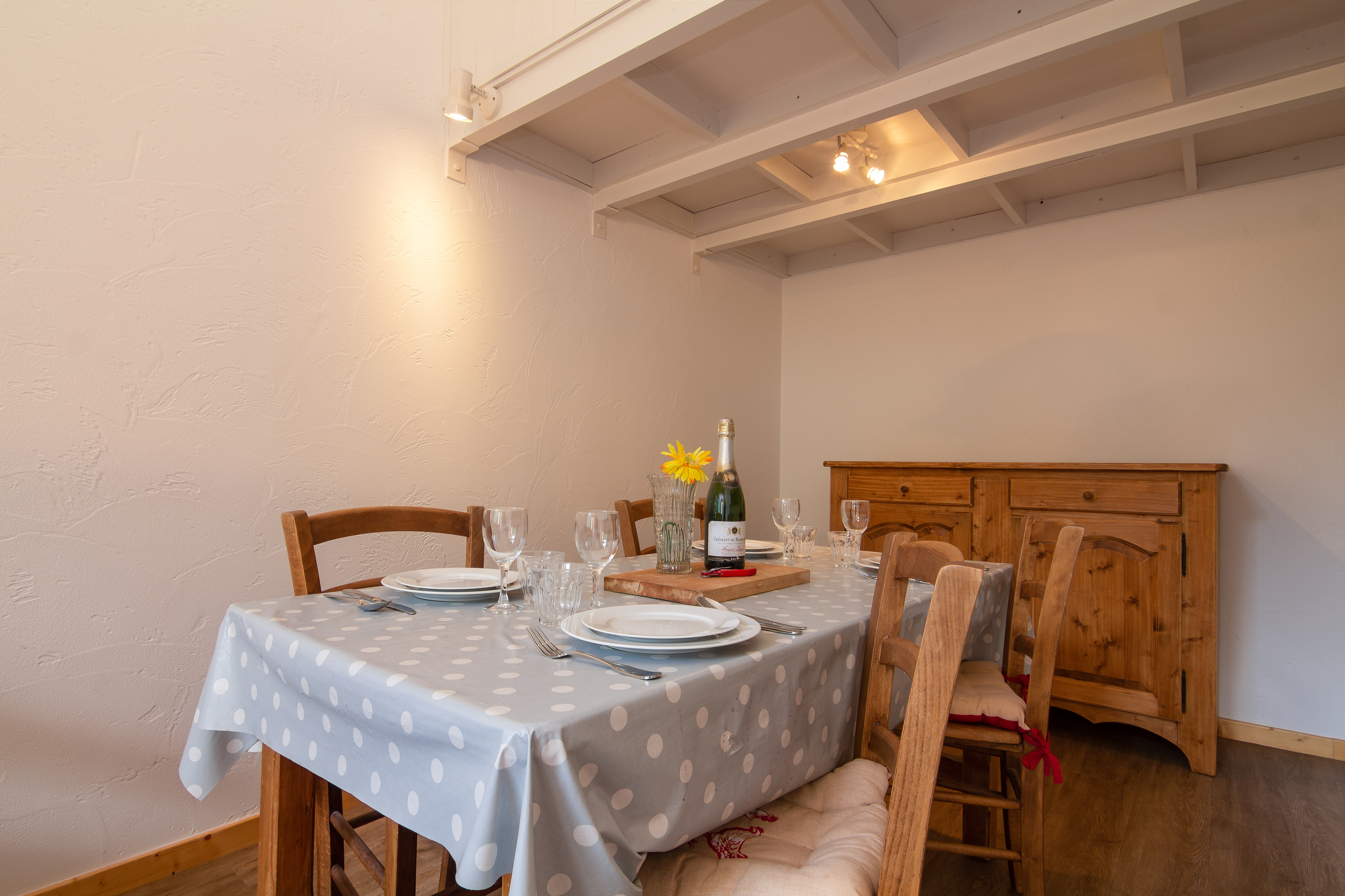 Het lichte en mooie appartement kenmerkt zich door frisse interieurs en een open indeling waardoor gasten zelfs van binnenuit kunnen genieten van de pittoreske uitzichten. De woonkamer bevat een zithoek met een bank, stoelen en een HD-tv, met uitzicht op de bergen en uitkomend op een balkon. Het eetgedeelte biedt plaats aan 3 gasten, terwijl de volledig uitgeruste keuken beschikt over een vaatwasser, magnetron, oven, koelkast, broodrooster en inductiekookplaat. Het duplexappartement heeft twee slaapkamers, één met een tweepersoonsbed en de andere met een stapelbed, evenals een moderne badkamer met een bad en een douche erboven.