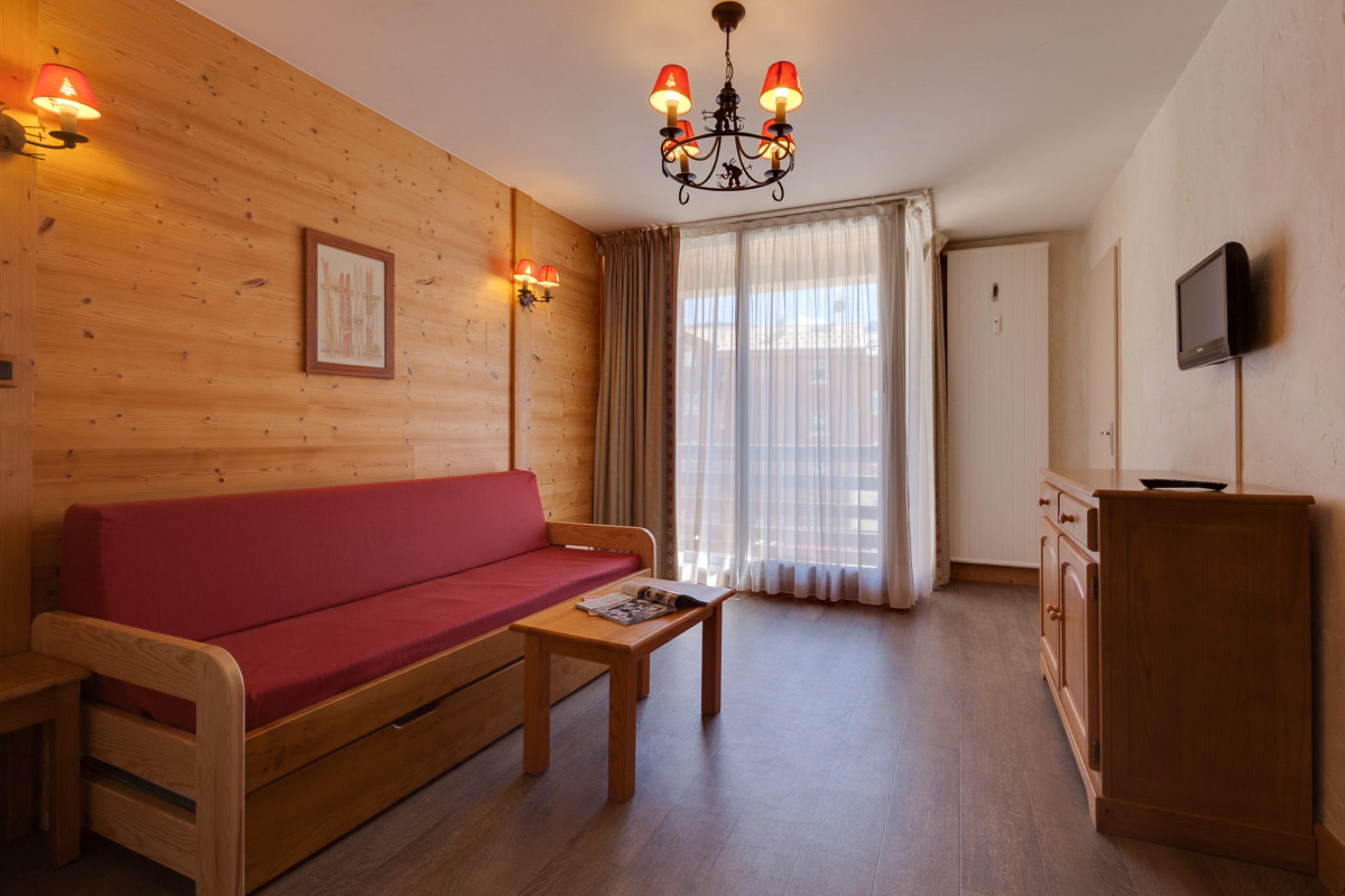 - Woonkamer met een uittrekbare slaapbank (voor 2 personen) en tv