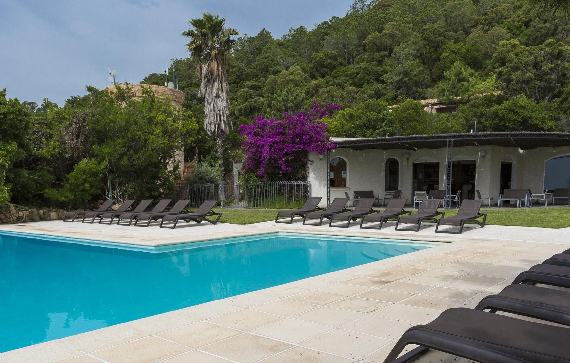 Deze residentie at Solenzara is gebouwd op een heuvel, geleidelijk aflopend naar de zee. Het ligt op slechts 200 meter van een zanderige kreek en van de rotsachtige kustlijn, halverwege tussen de fijne zandstranden van Canella (1 km) en Favone (2 km).