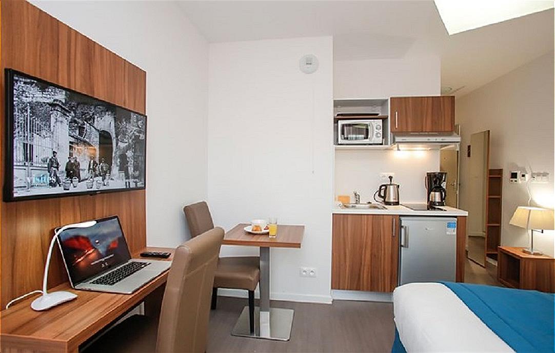 Het Odalys Residence Metz Manufacture ligt op slechts 10 minuten lopen van het plein van de kerk van Saint Vincent, het oude centrum met winkels en restaurants en de rivier de Moezel. Het biedt 33 comfortabele, goed uitgeruste slaapkamers en suites voor 1 tot 4 personen op de 6e en 7e verdieping. Elk heeft een kitchenette (kookplaat x 2 branders, kleine koelkast, magnetron, koffiezetapparaat, waterkoker), een doucheruimte.