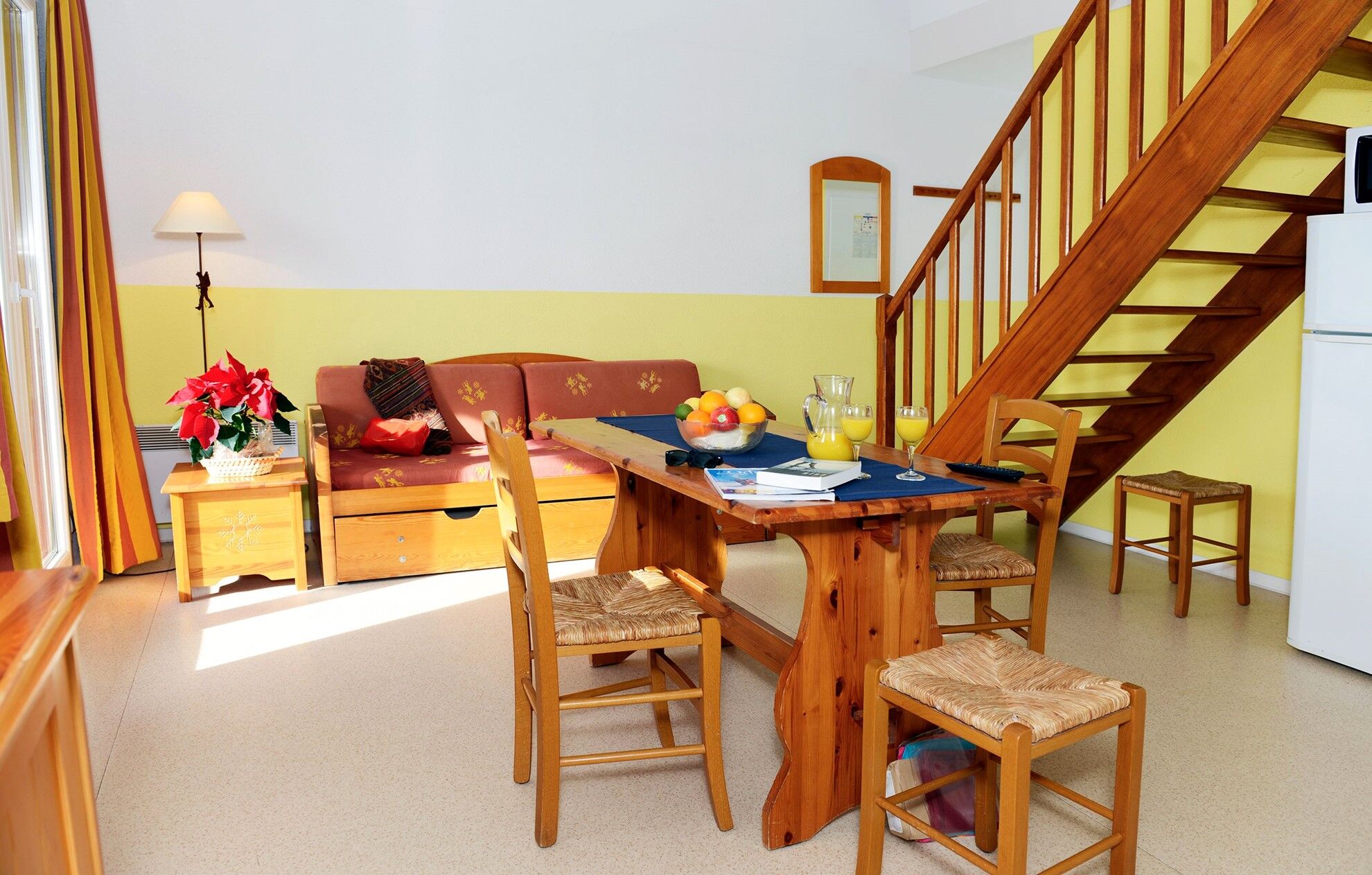 Deze noordelijk gelegen studio is geschikt voor 4 personen en heeft een oppervlakte van ongeveer 26-30 m2. Het beschikt over een woonkamer met 2 uitklapbedden (of een slaapbank voor 2 personen in het appartement geschikt voor gasten met beperkte mobiliteit), een kamer met stapelbed, een keuken uitgerust met koelkast, keramische kookplaten, magnetron met grillfunctie, afwasmachine, afzuigkap. Er is ook een badkamer of doucheruimte met apart toilet.