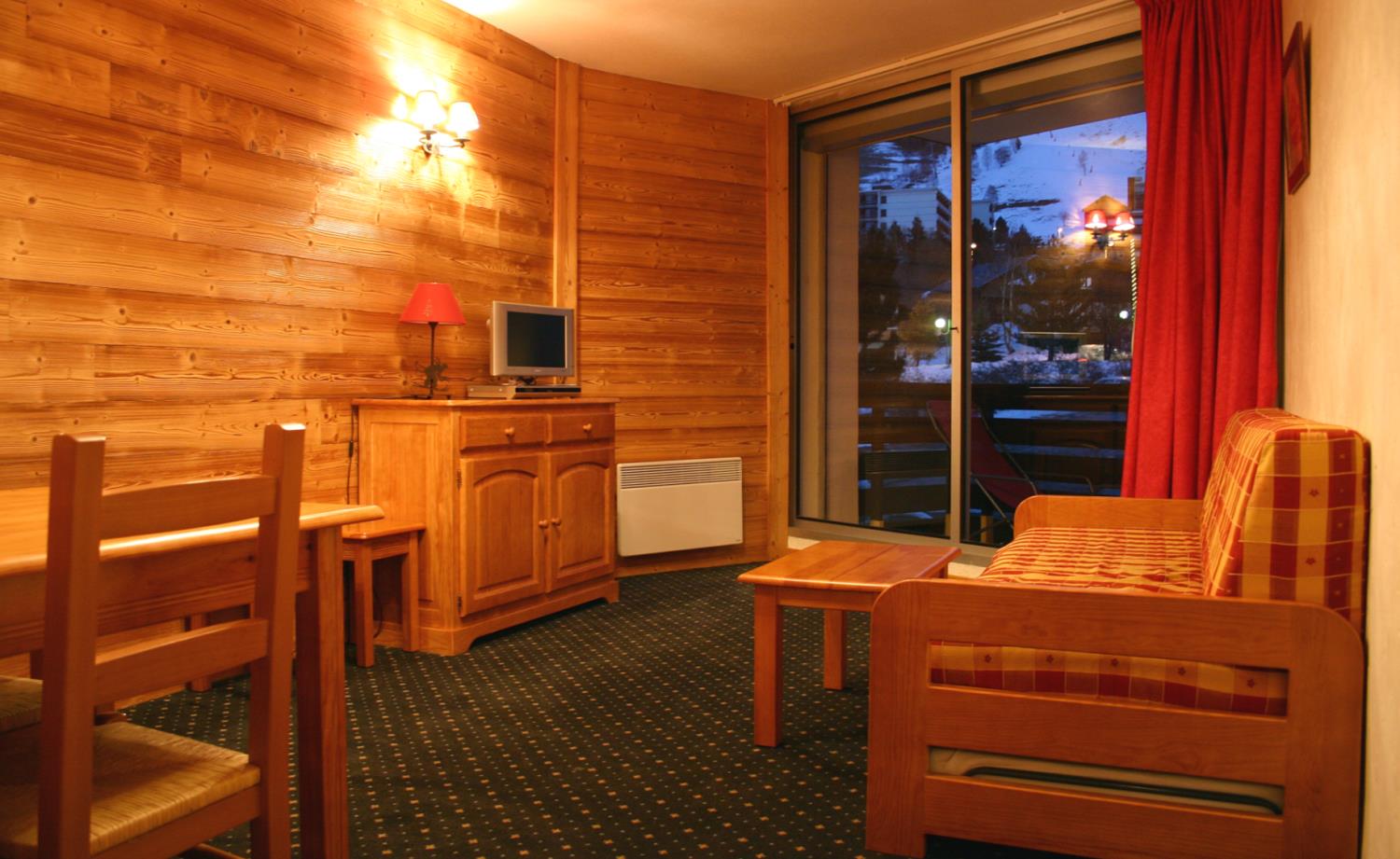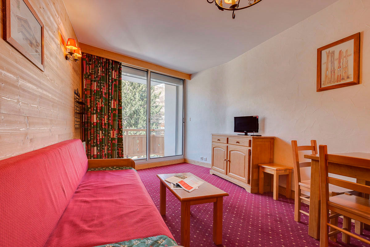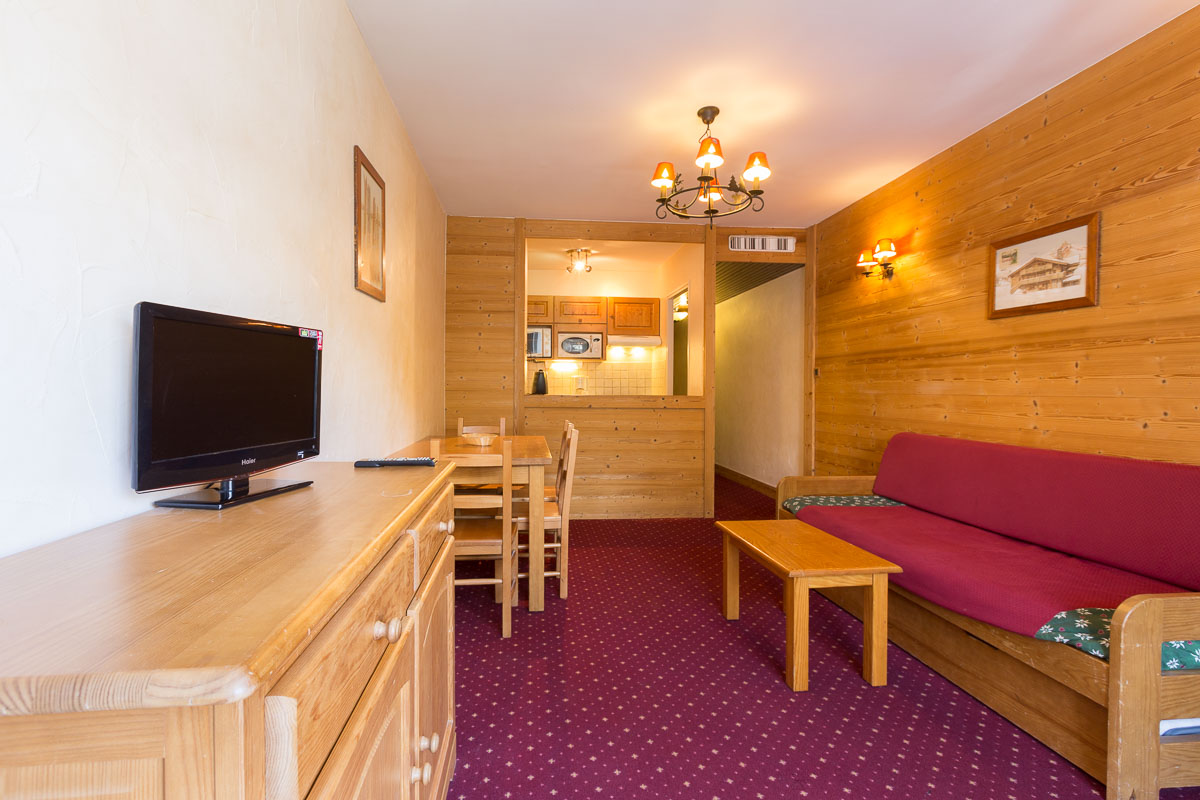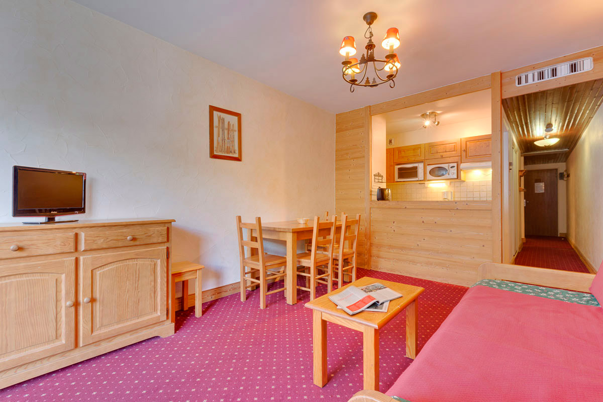 Résidence Le Sappey biedt gezellige studio’s van 35 m² die plaats bieden aan maximaal 4 personen, in een eenvoudige en warme sfeer.